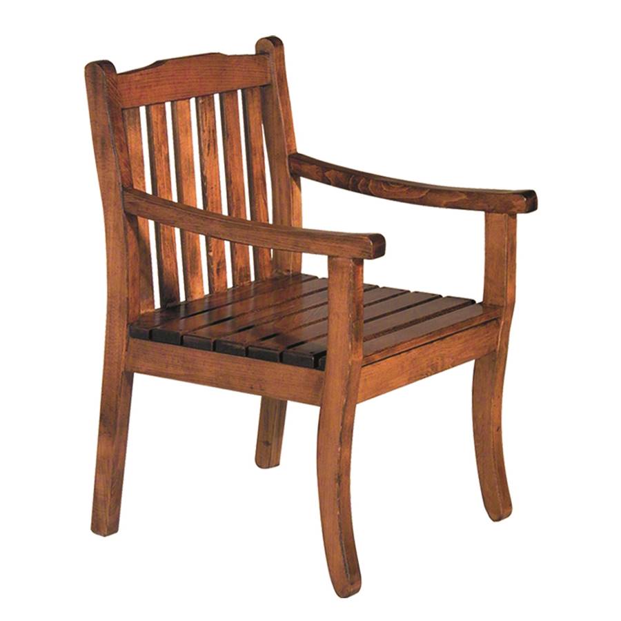 Този градински стол с подлакътници, целият от буково дърво в цвят орех, е функционален модел, подходящ за веранди, градини и заведения с голяма площ.