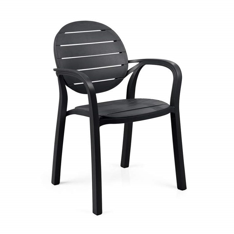 Градински стол с кръгла облегалка и полакътници-антрацит