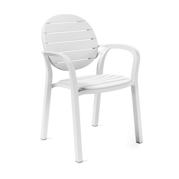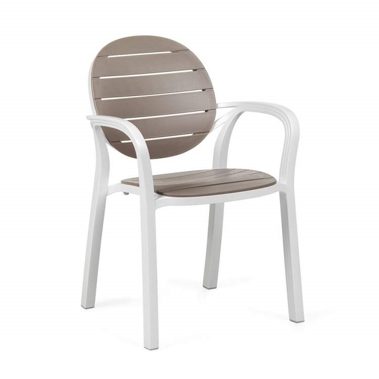 Градински стол с кръгла облегалка и полакътници-бял+сив
