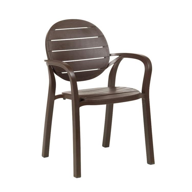 Градински стол с кръгла облегалка и полакътници-кафяв