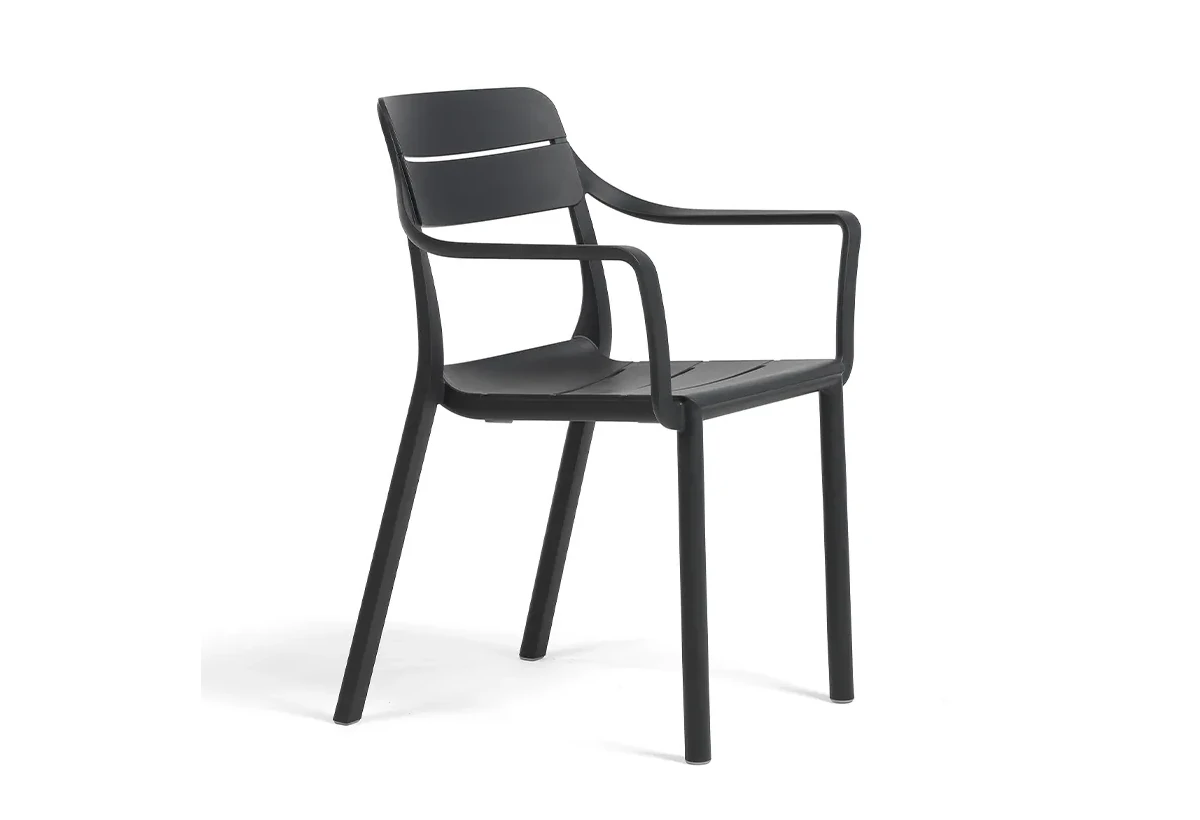 Градински стол с подлакътници C001 е практично решение за обзавеждане на външни пространства с акцент върху устойчивостта и удобството.