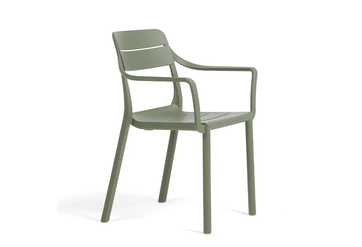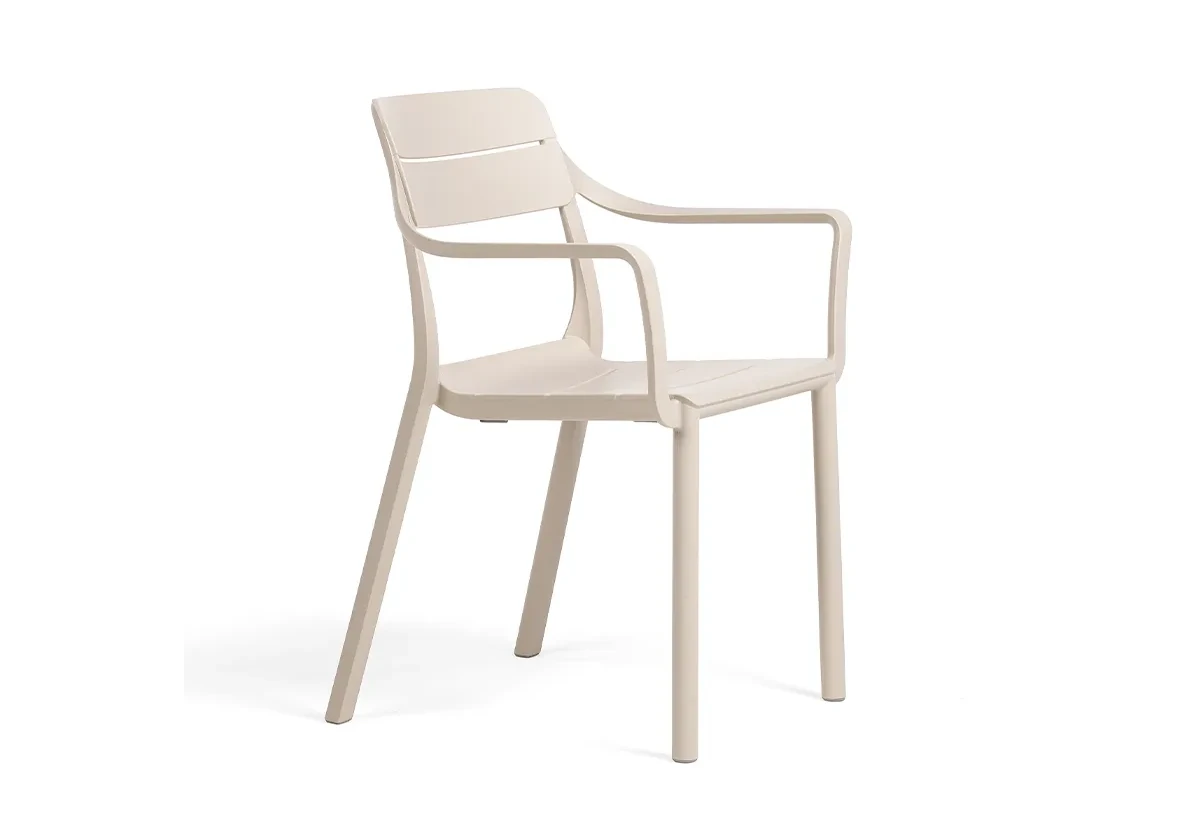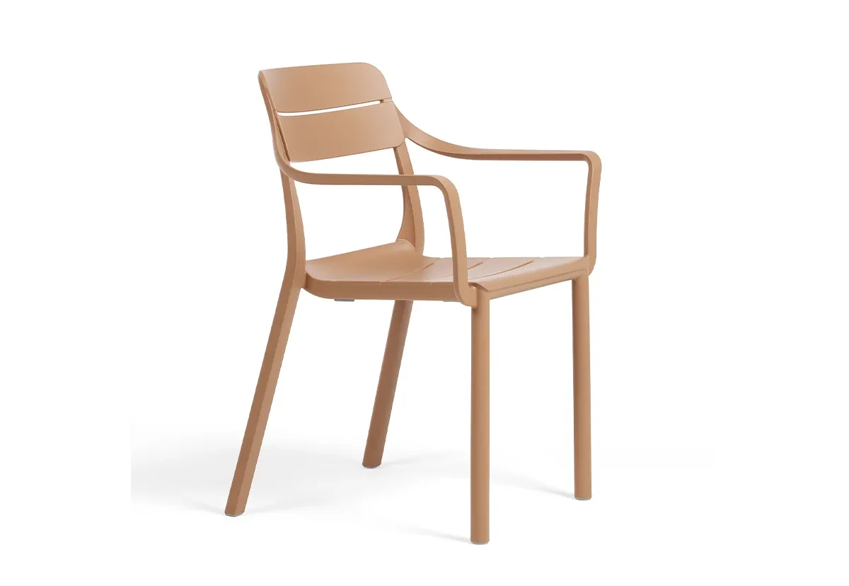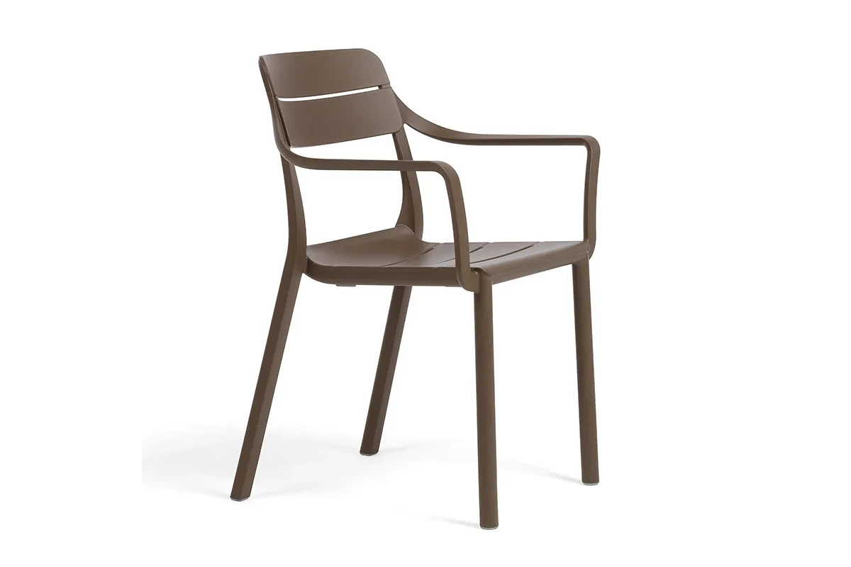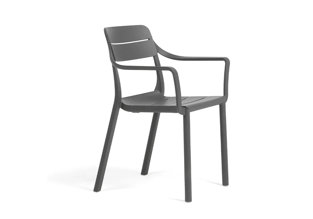 Ергономично оформените седалка и облегалка с декоративни хоризонтални линии създават комфорт при седене, а подлакътниците допълват усещането за стабилност и удобство както при кратък отдих, така и при по-продължителен престой.