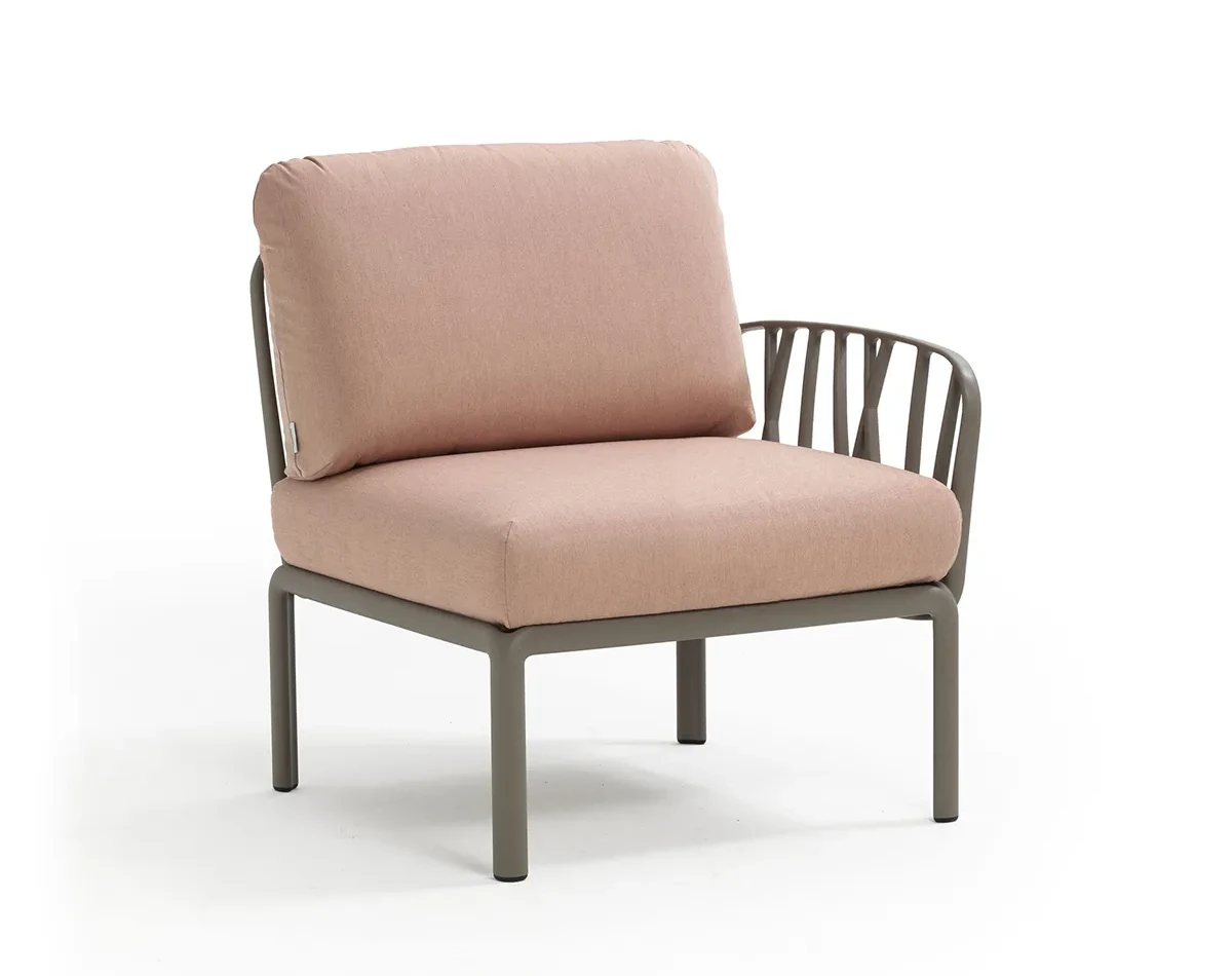Градинско кресло с един подлакътник K022 представлява краен модул от модулна система за градински диван D007, който може а се използва и самостоятелно. Моделът е подходящ за оформление на различни външни пространства – градини, балкони, тераси, зони около басейни и заведения на открито.