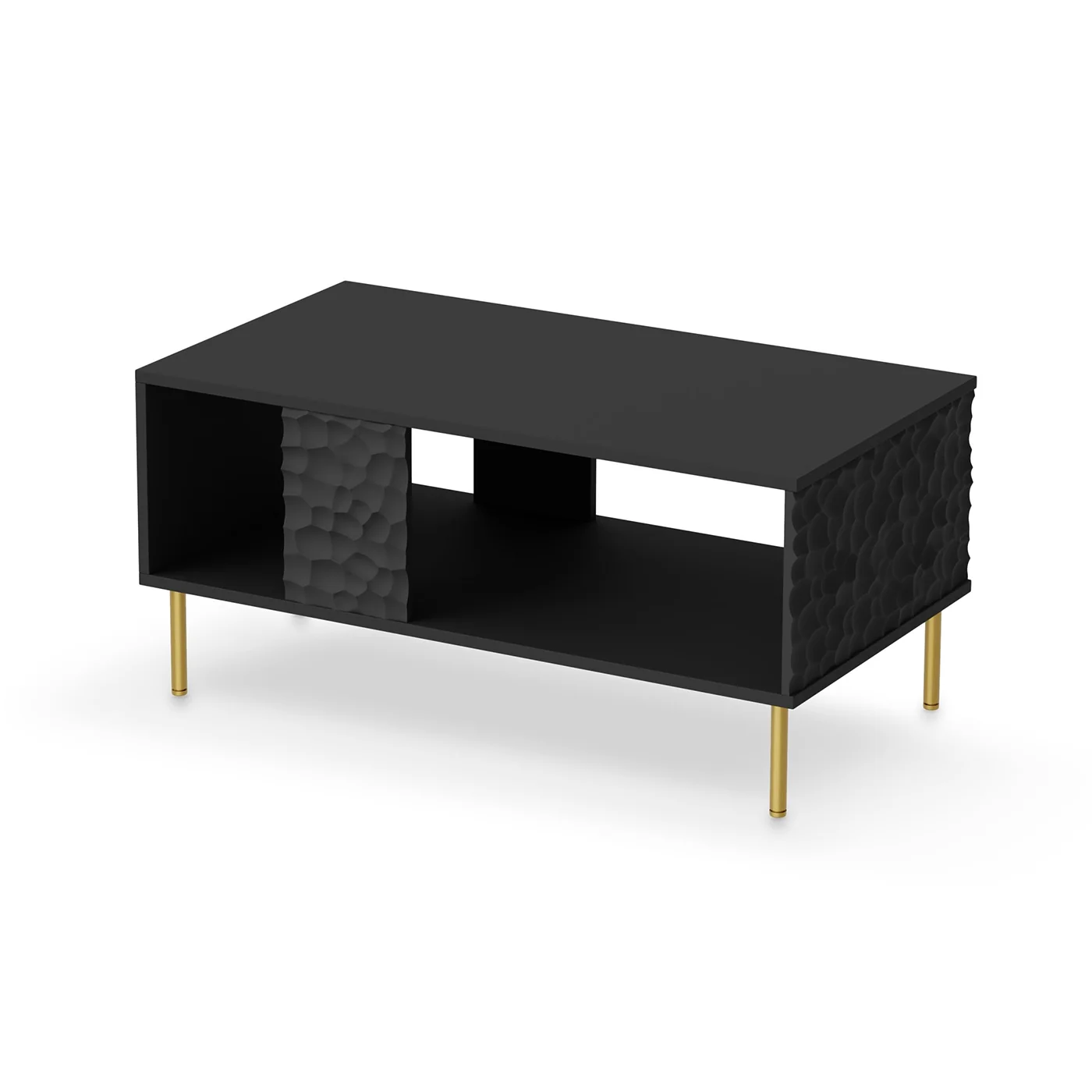 Холна маса Bullet е с правоъгълен плот с отворени ниши за съхранение на книги, списания и аксесоари. Изработена е от ламинирано ПДЧ и ламиниран МДФ, със златисти метални крачета, които придават контраст.