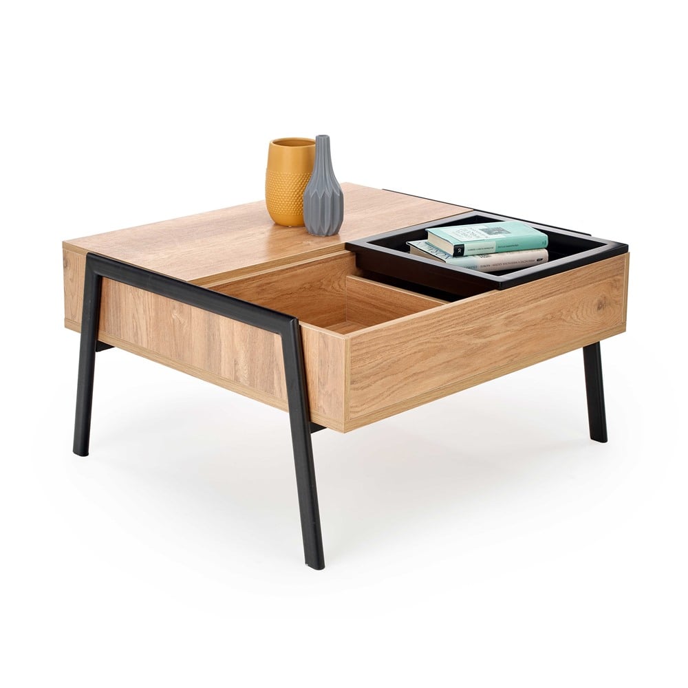 Атрактивна холна маса с нестандартен плот и метална основа.