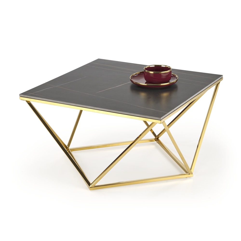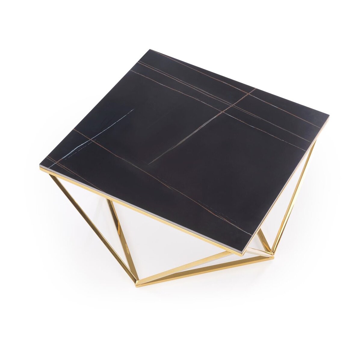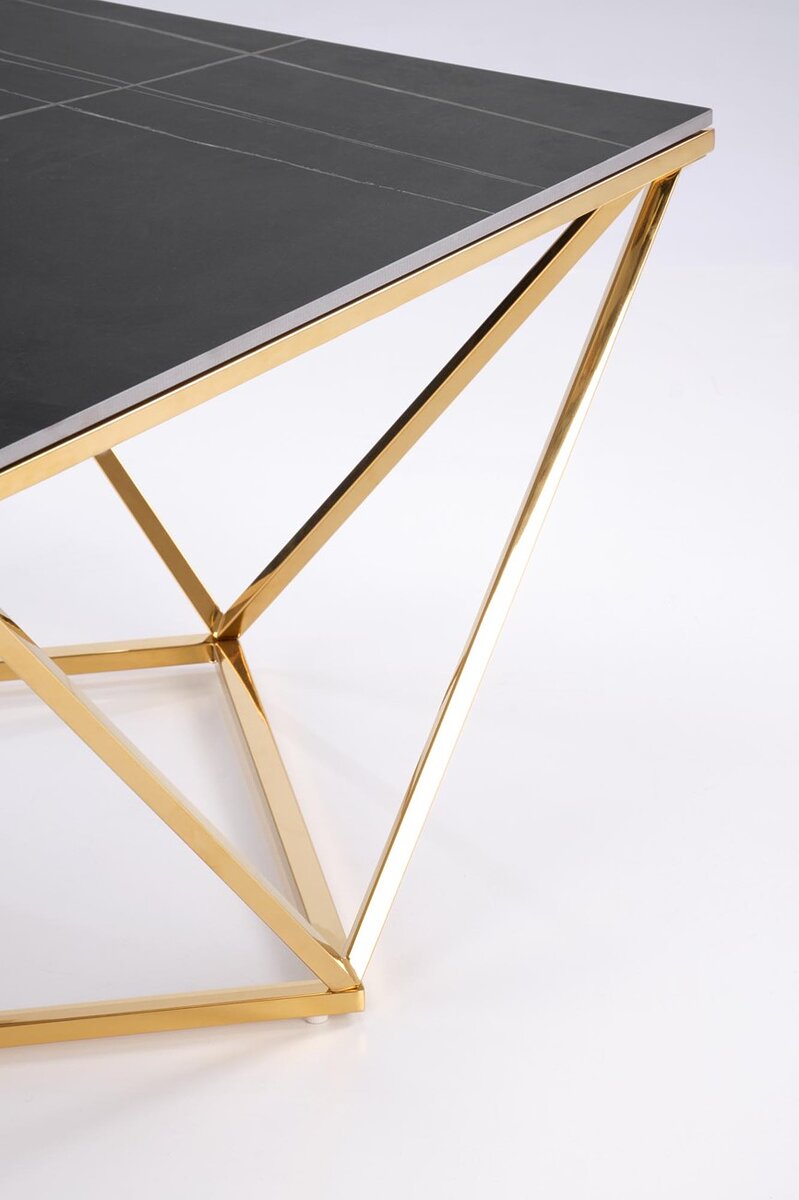 Геометричните форми и цветовата комбинация на черен мрамор със златисто на масата я правят атрактивен елемент към модерно обзавеждане.