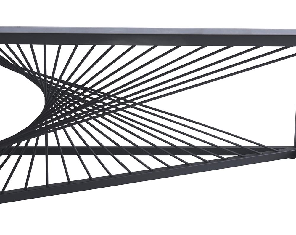 Плотът е изработен от синтерован камък, а основата от праховобоядисана стомана.