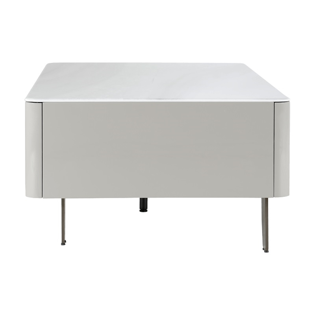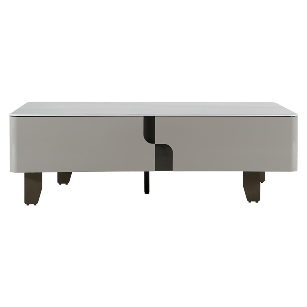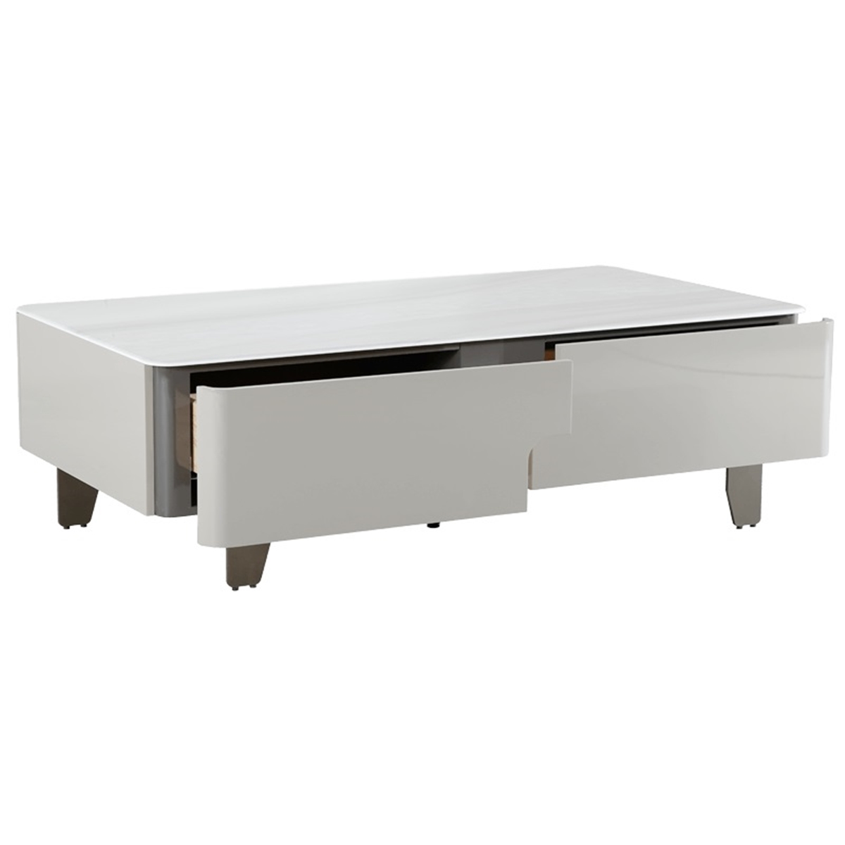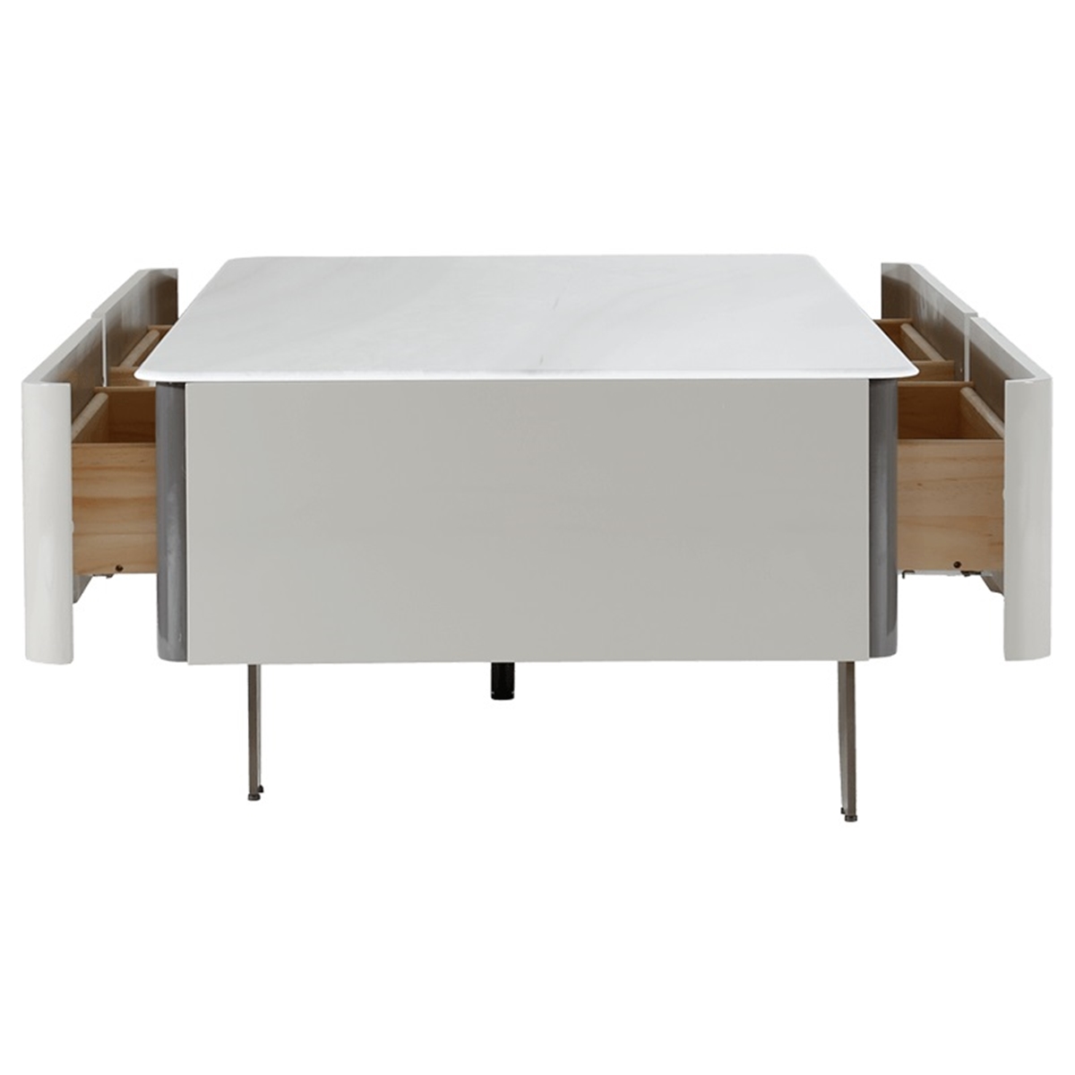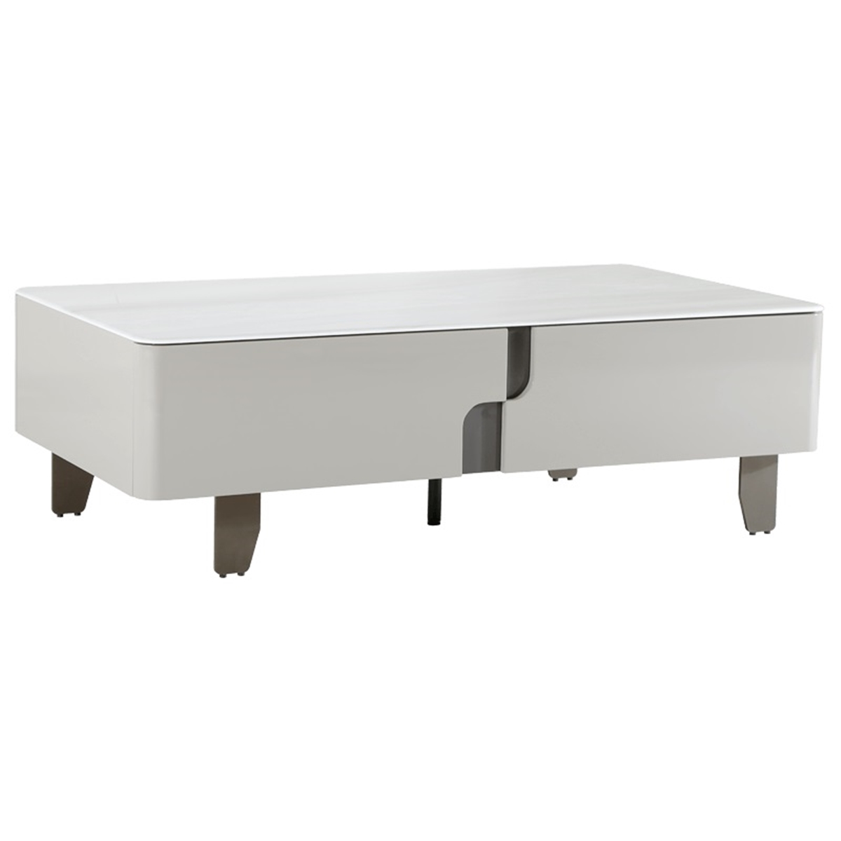 Плотът е изработен от устойчива керамика с мраморен ефект в цвят капучино, която придава елегантно излъчване и осигурява лесна поддръжка в ежедневието. Четирите чекмеджета за съхранение с корпуси от борова дървесина предлагат удобно място за дистанционни, списания и други дребни вещи, като поддържат дневната подредена и функционална.
