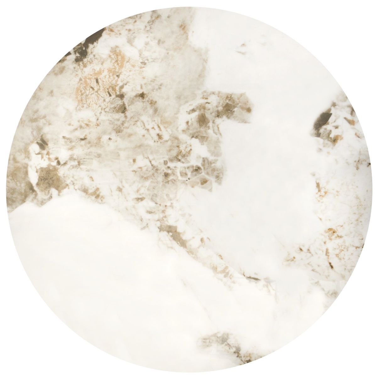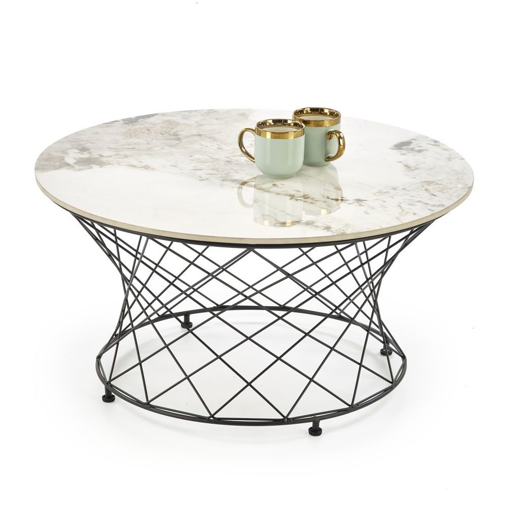 Кръгла холна маса с плот имитиращ мрамор със съвременен дизайн.