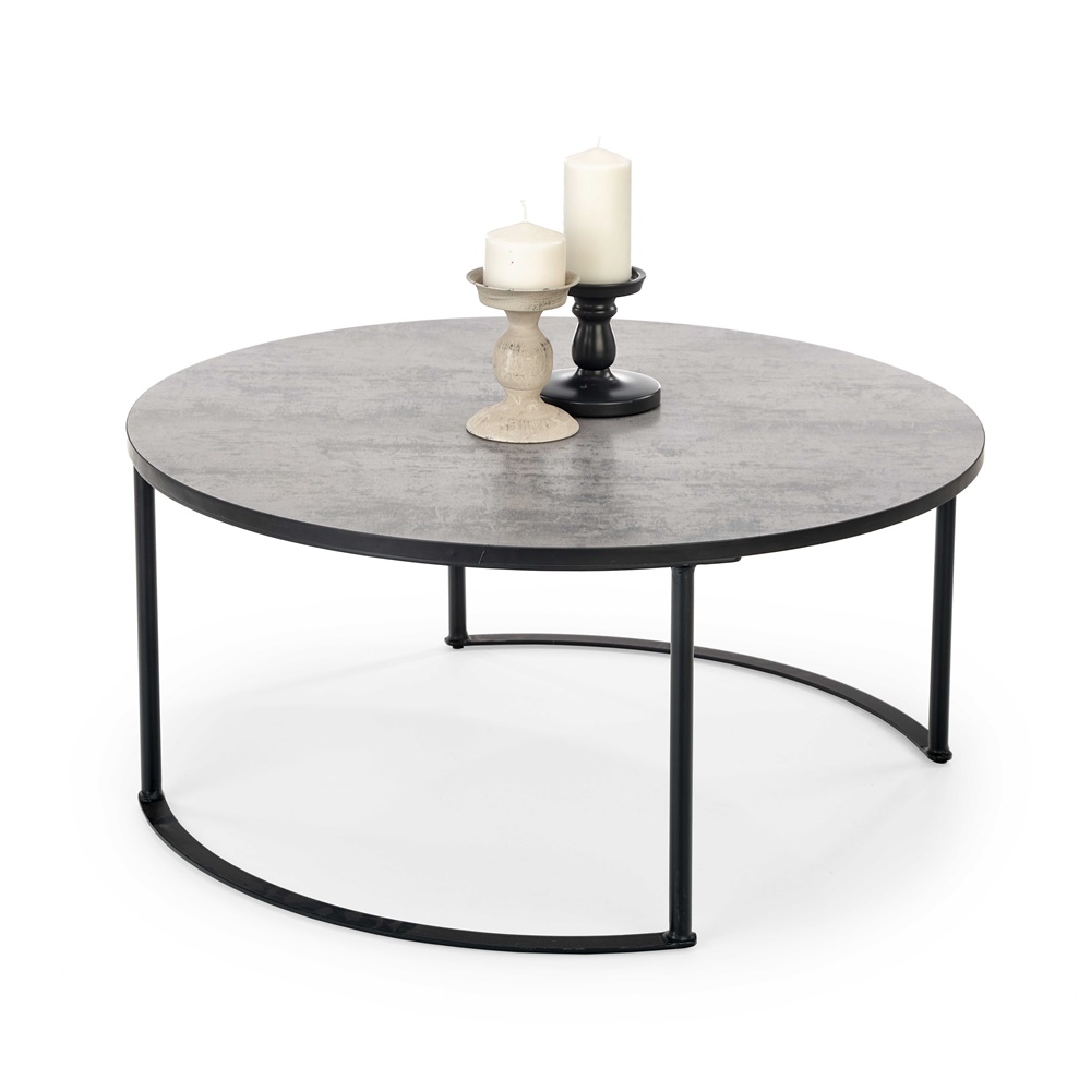 Кръгла холна маса със сив плот и черна основа Грейси.