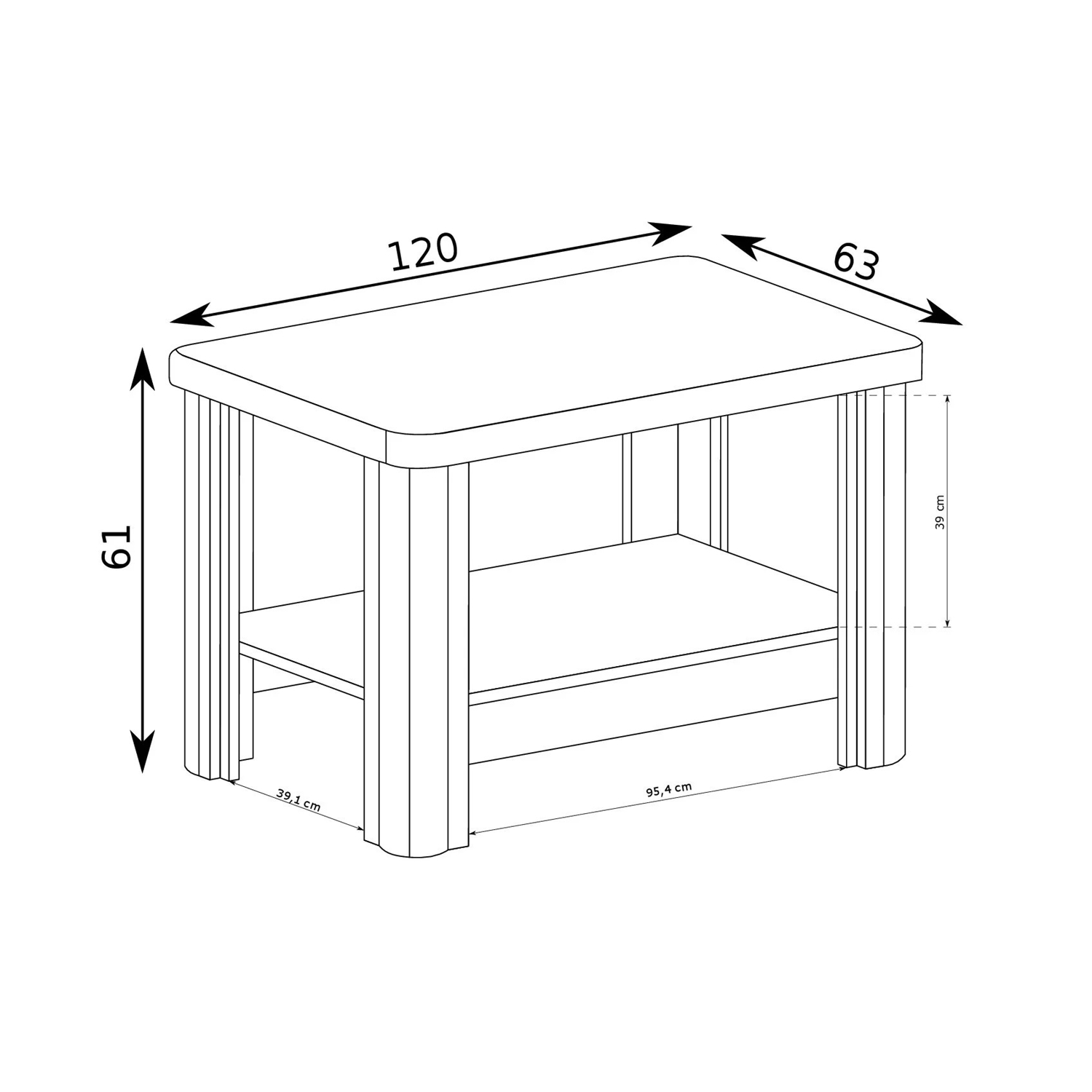 Плотът с дебелина 48 мм осигурява здравина и устойчивост, а практичният долен рафт с дебелина 12 мм е идеален за съхранение на вещи.