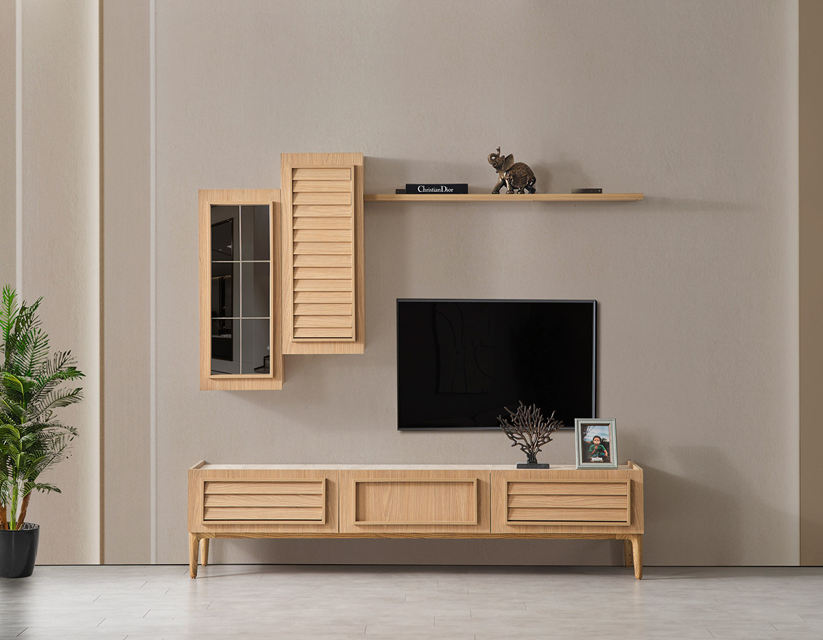 Изчистените линии и елегантният светъл дървесен цвят придават топъл и модерен вид, който лесно се интегрира във всяка дневна.