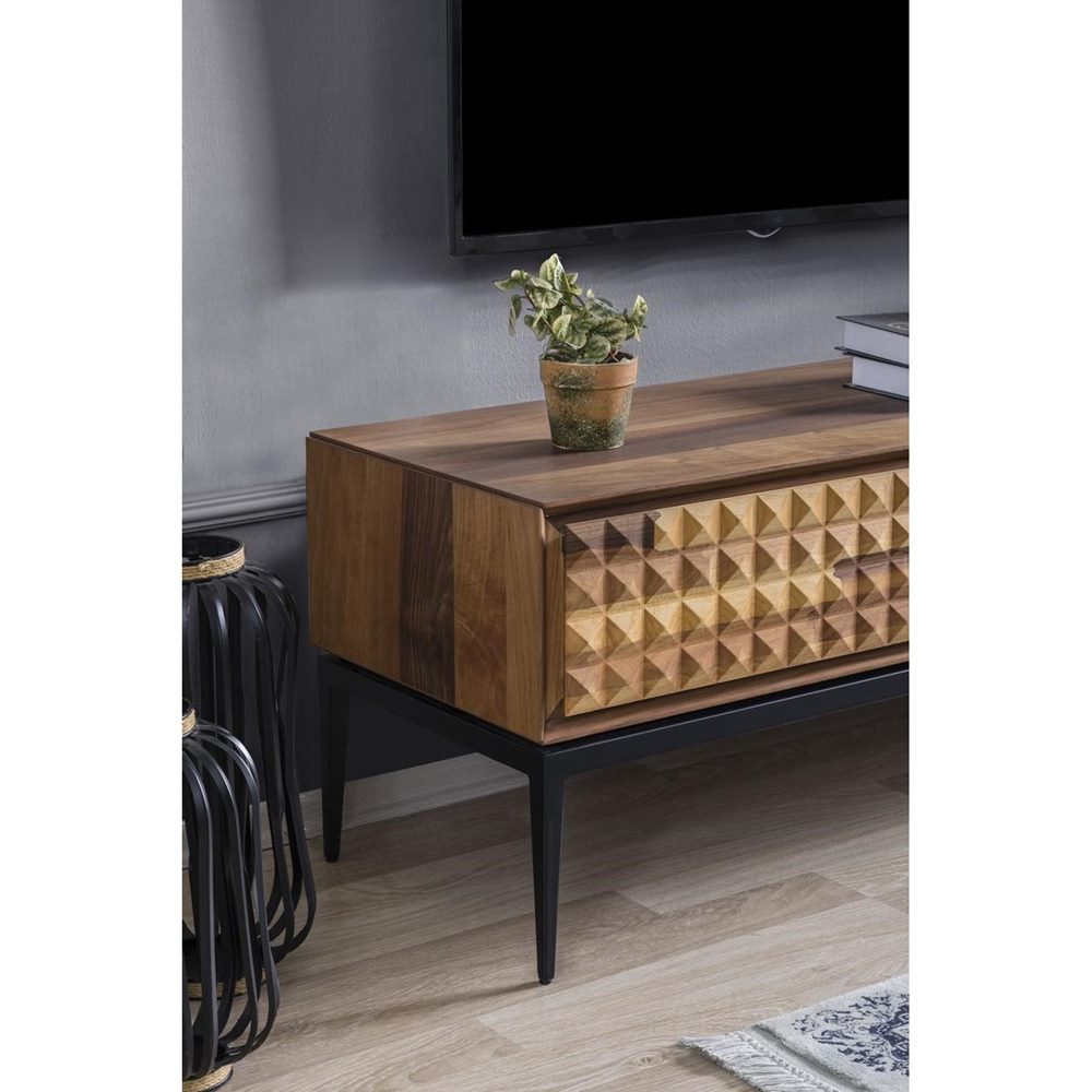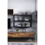 Изработена е от ламиниран МДФ, масивно дърво и стъкло с метални крачета.