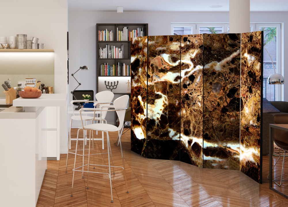 Интериорен параван наподобяващ стена от кафяв гранит - 5 крила