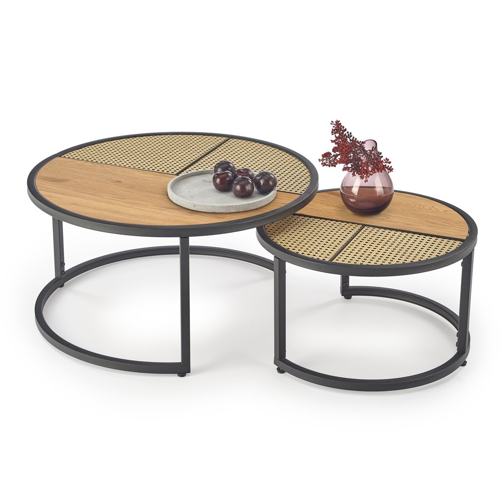 К-т холни маси с кръгъл плот в цвят златен дъб с черна основа Гарми.