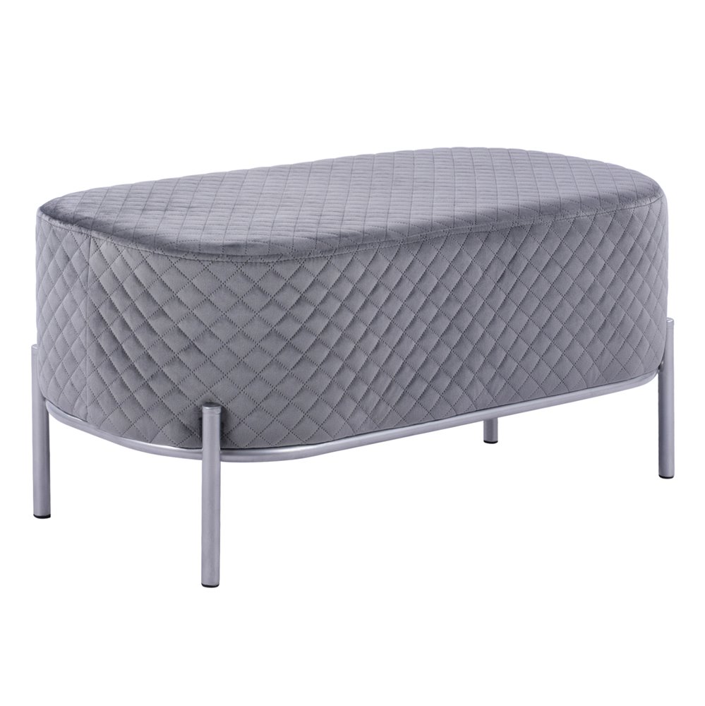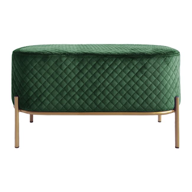 Кадифена табуретка в издължена овална форма и с метални крачета в златисто или сребристо.