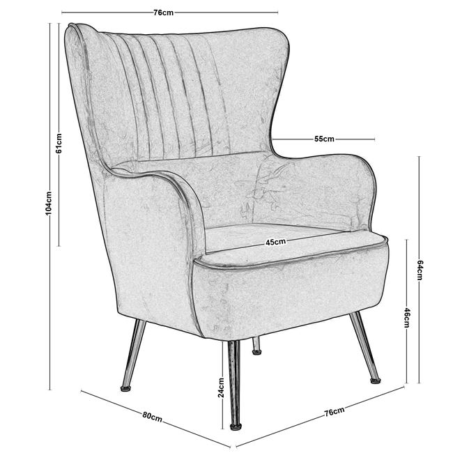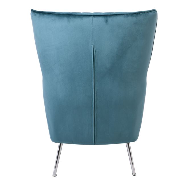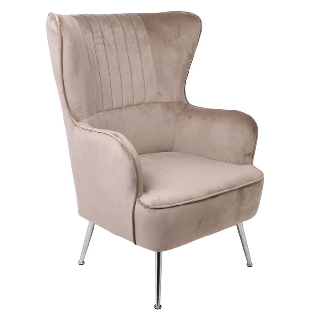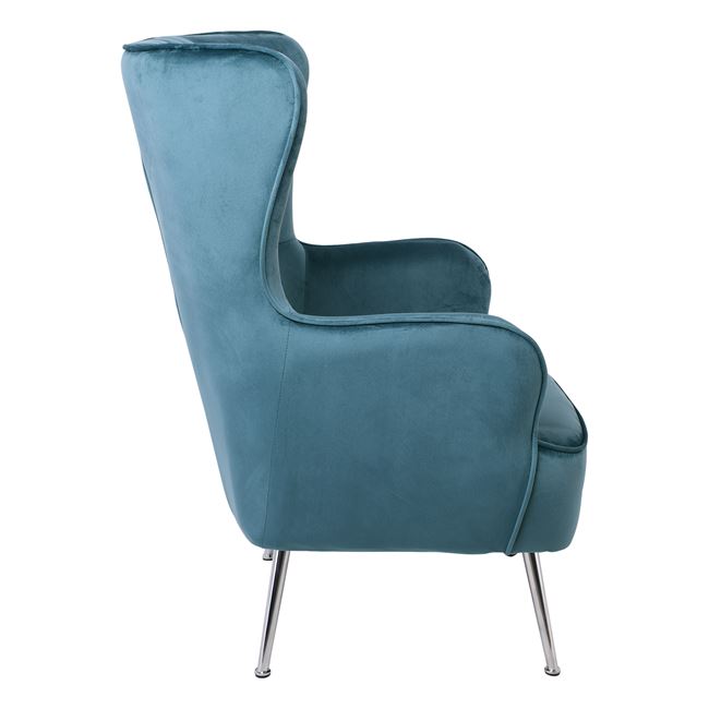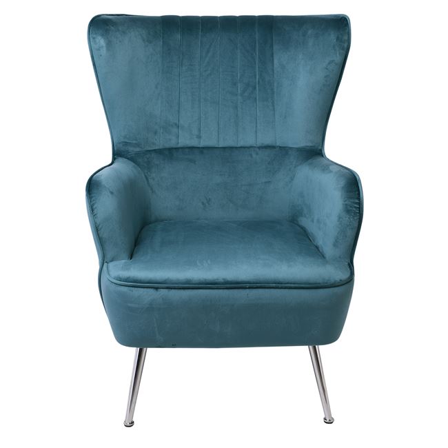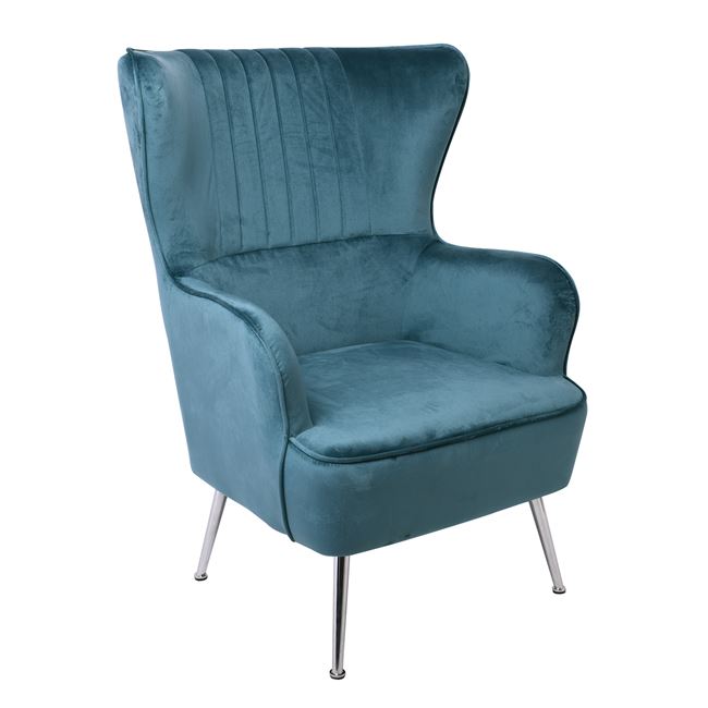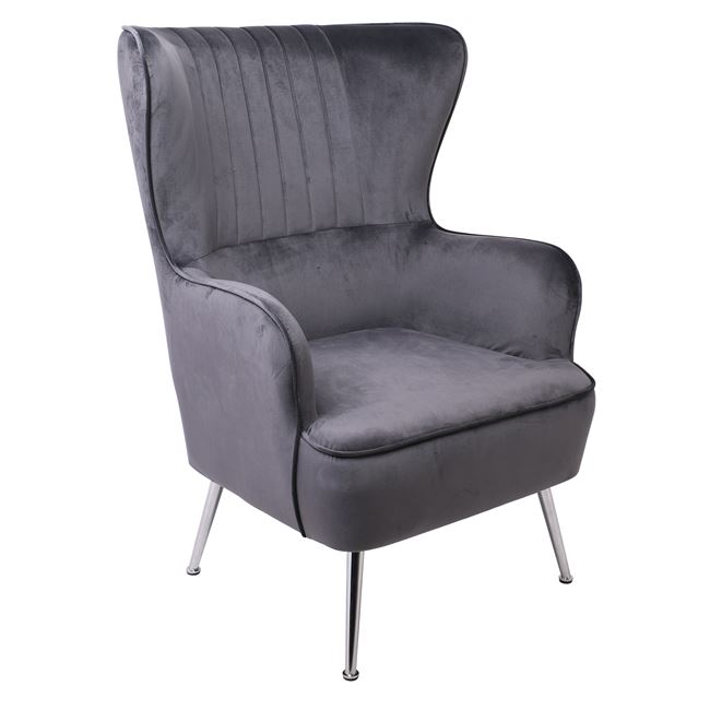 Кадифено кресло с подлакътници, удобна облегалка и хромирани крачета Мисти, което се предлага в три цвята – сив, син, кафяв.