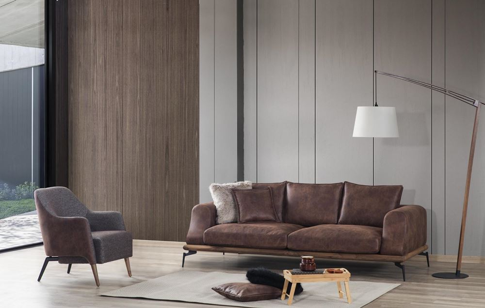 Този елегантен диван е красиво допълнение в обзавеждането на интериори, решени в земни тонове.