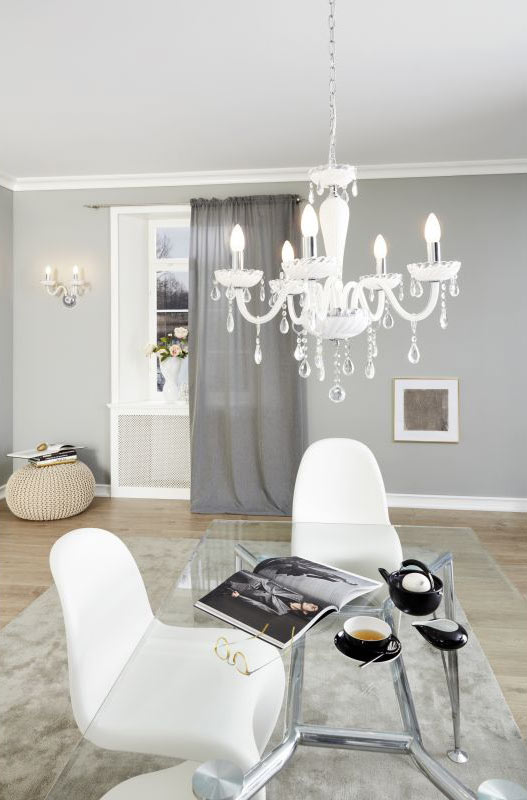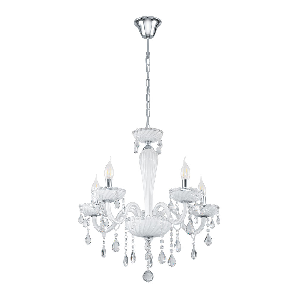 Класическият полилей в бяло от Eglo серия Carpento се предлага в 3 варианта: с 3, 5 и 8 осветителни тела.