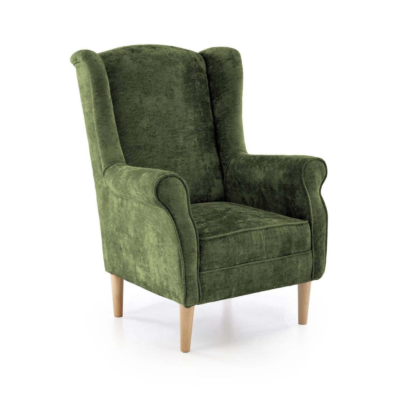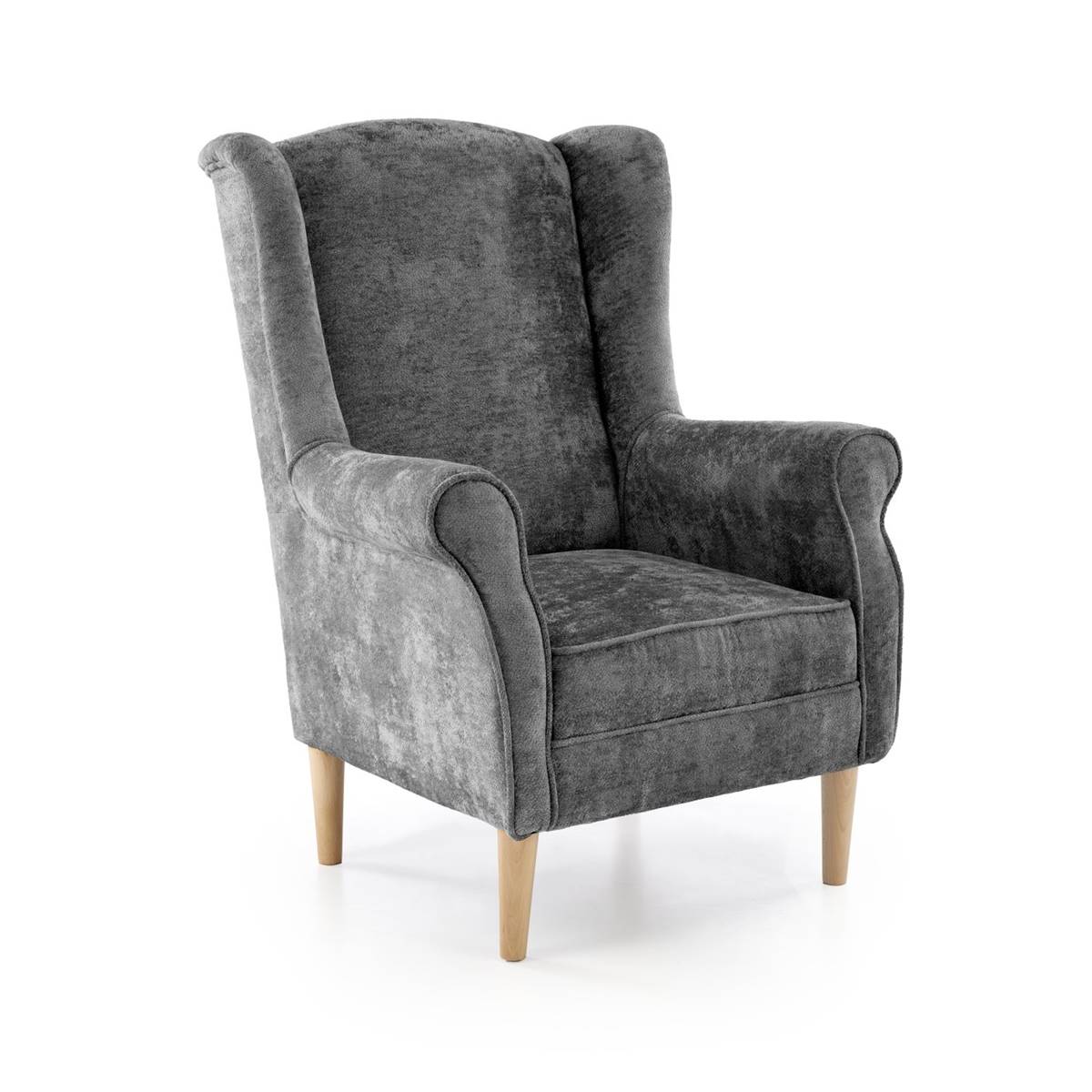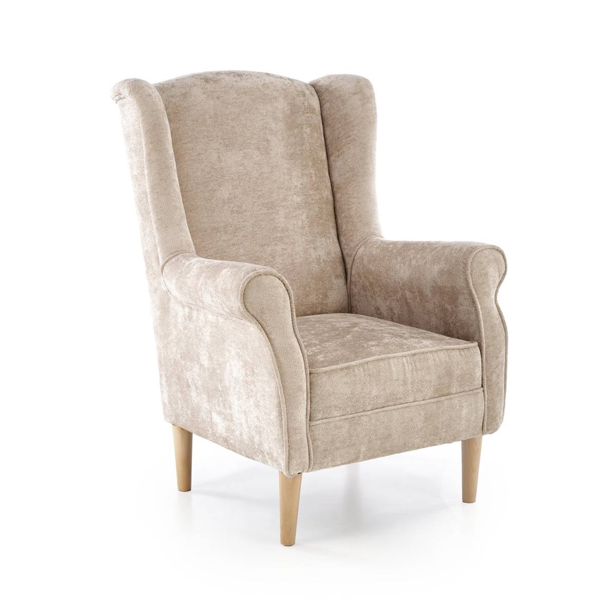 Седалката и облегалката са тапицирани с мек текстил, а краката са изработени от масивно дърво за стабилност и устойчивост.