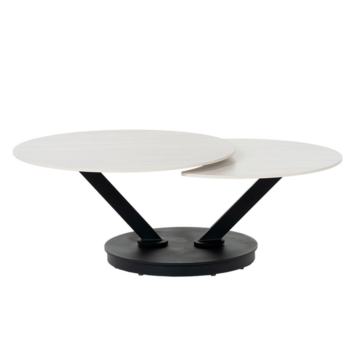 Кръглите плотове в елегантен кремав цвят внасят светлина и усещане за финес във всяко пространство.Стабилната метална основа в черно осигурява надеждност и стилен визуален контраст