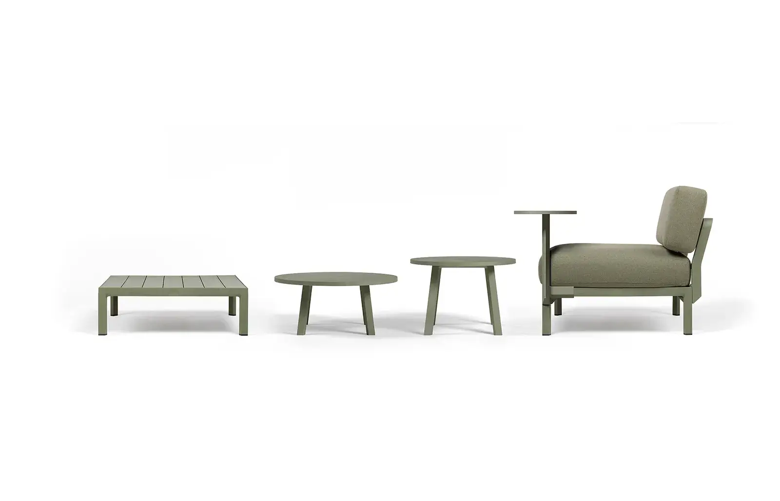 Градинска масичка M011 се предлага в 4 цвята – зелен, кафяв, сив и мръснобял, които позволяват лесно съчетаване с различни градински столове и други външни мебели.