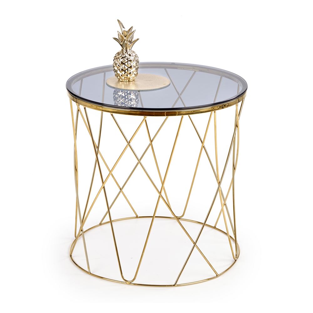 Кръгла холна маса с опушен стъклен плот Стейси златист, отгоре