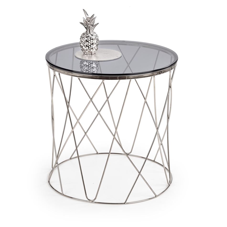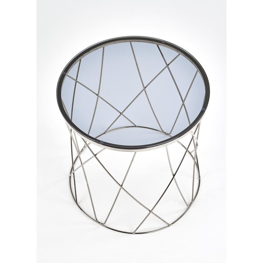 Кръгла холна маса с опушен стъклен плот Стейси сребрист, отгоре