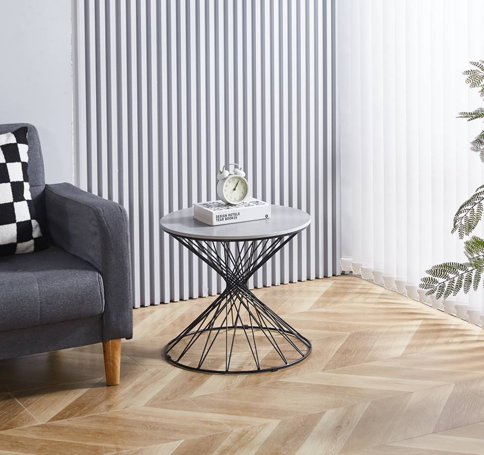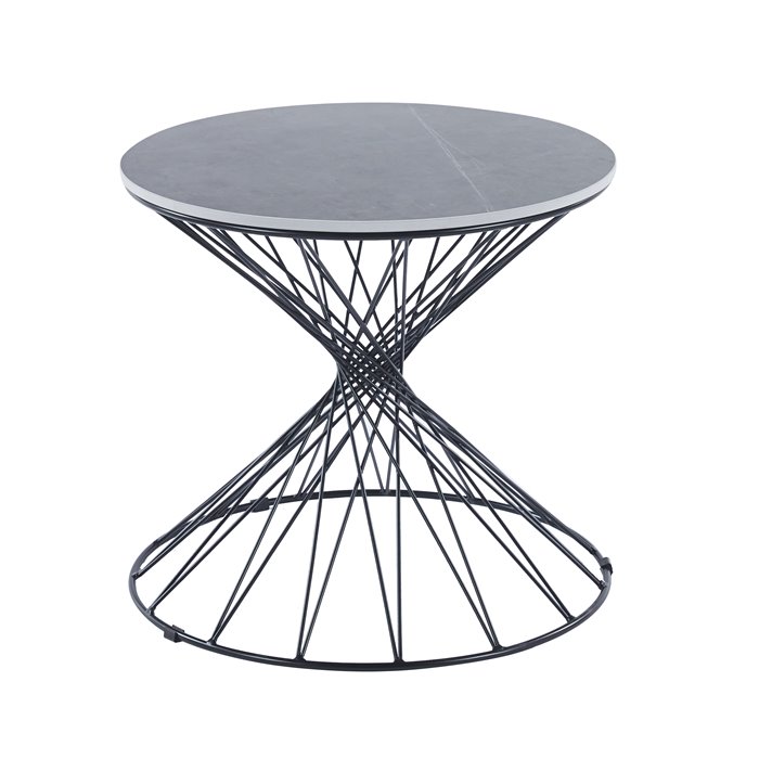 Кръгла холна маса, изработена с керамичен плот с дебелина 9 мм и атрактивна метална основа в черен цвят, Харпър.