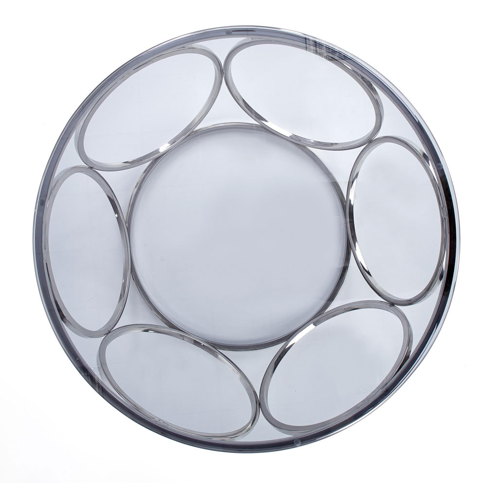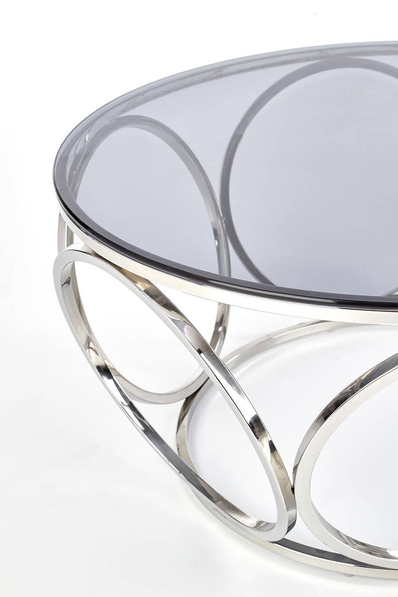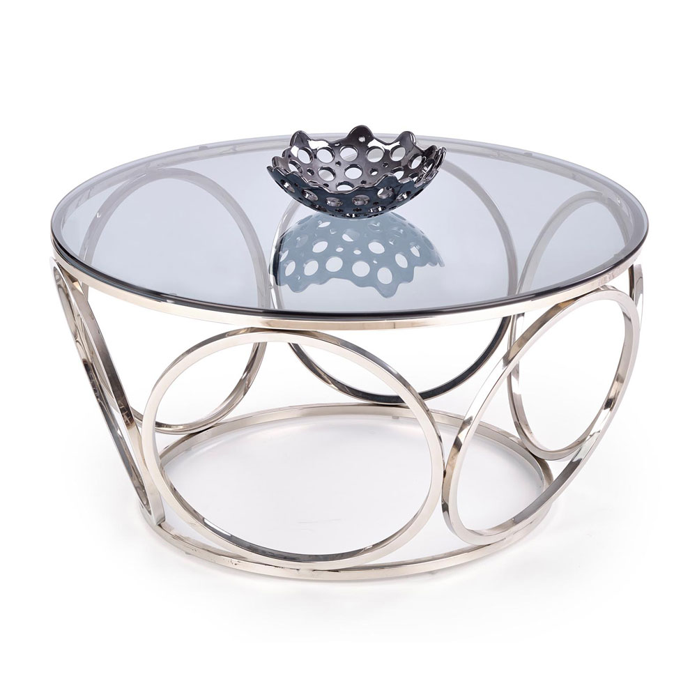 Кръгла холна маса с плот от опушено стъкло и оригинална хромирана основа.