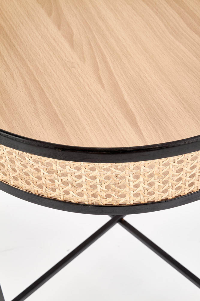 Кръгла холна маса с ратанов плот и черна метална основа - детайл плот