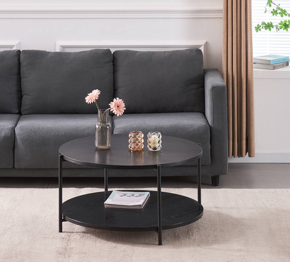 Кръгла холна маса в черен цвят с два плота, Амбър.