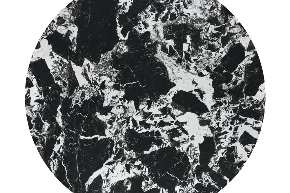 Кръгла маса с плот като черен мрамор Санта - отгоре