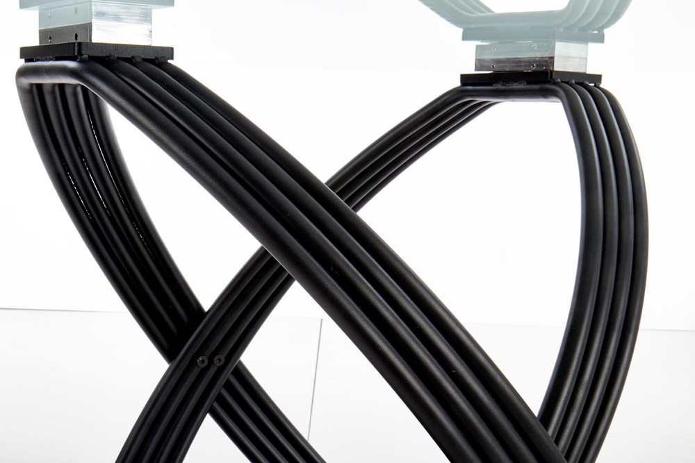 Кръгла трапезна маса от стъкло, дърво и метал Опус - крака