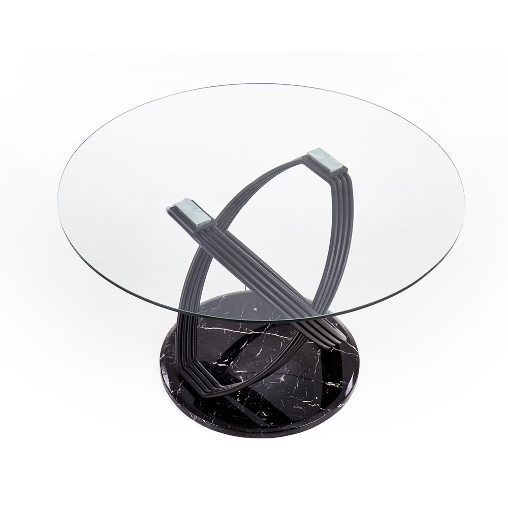 Кръгла трапезна маса от стъкло, камък и метал Опус