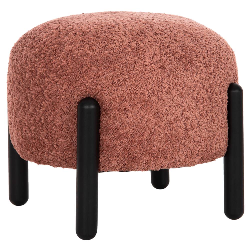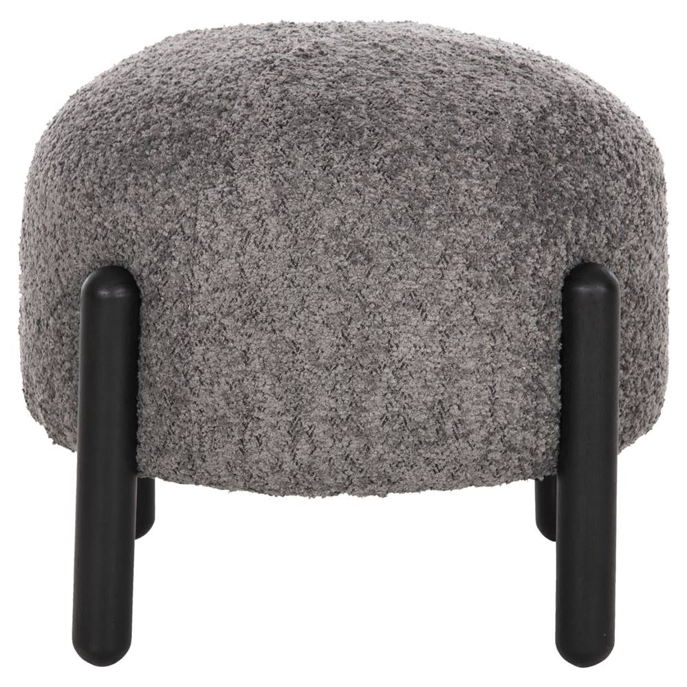 Модерна кръгла табуретка, изработена с мека текстилна дамаска букле и стабилни черни метални крака – красиво и практично решение, подходящо за различни интериорни стилове.