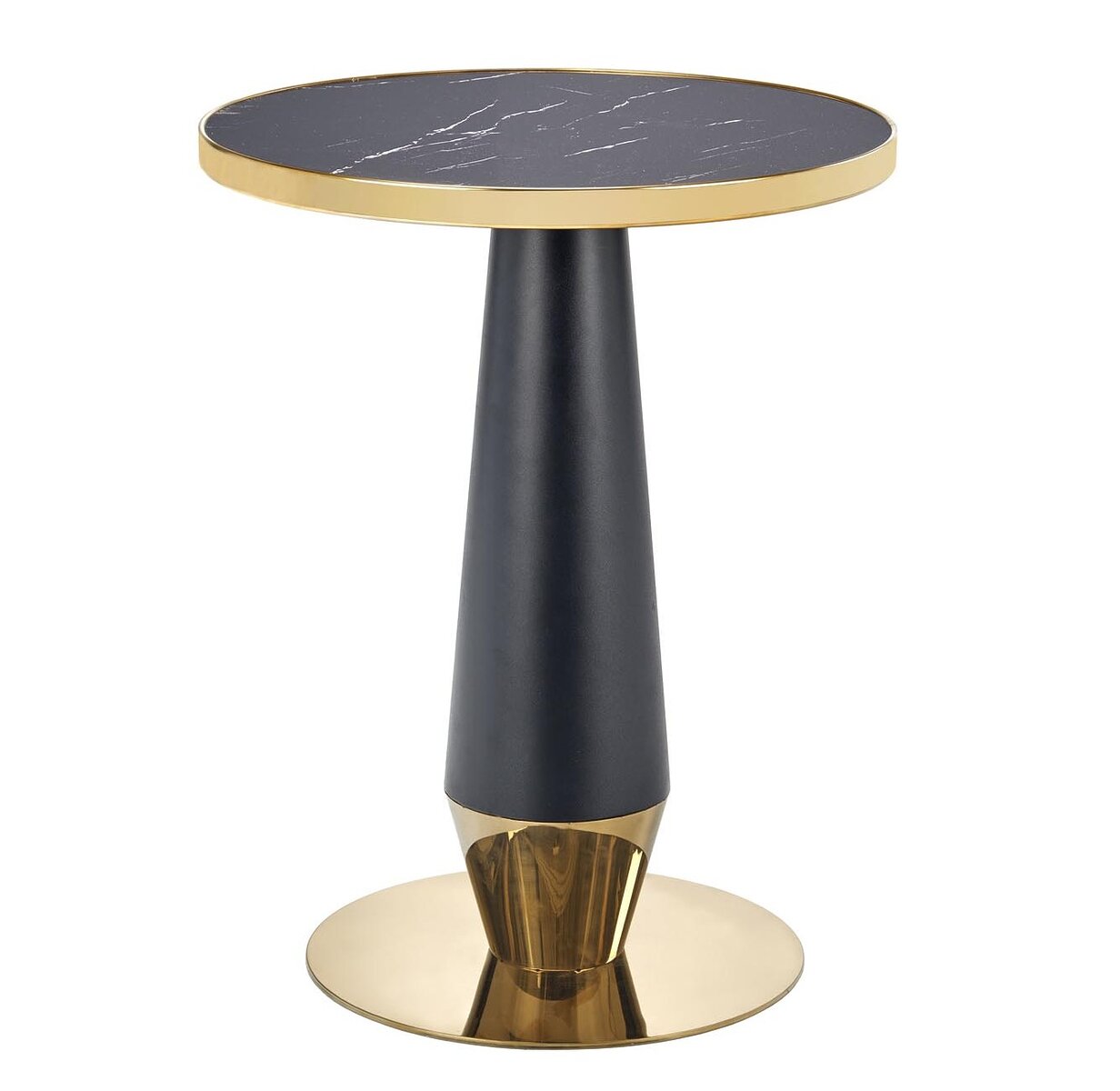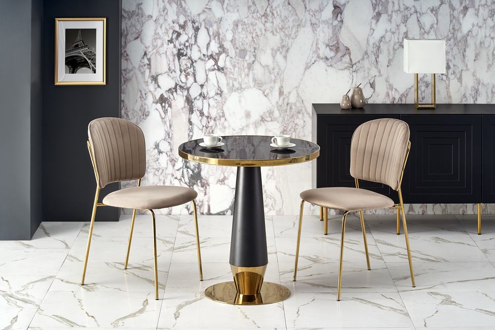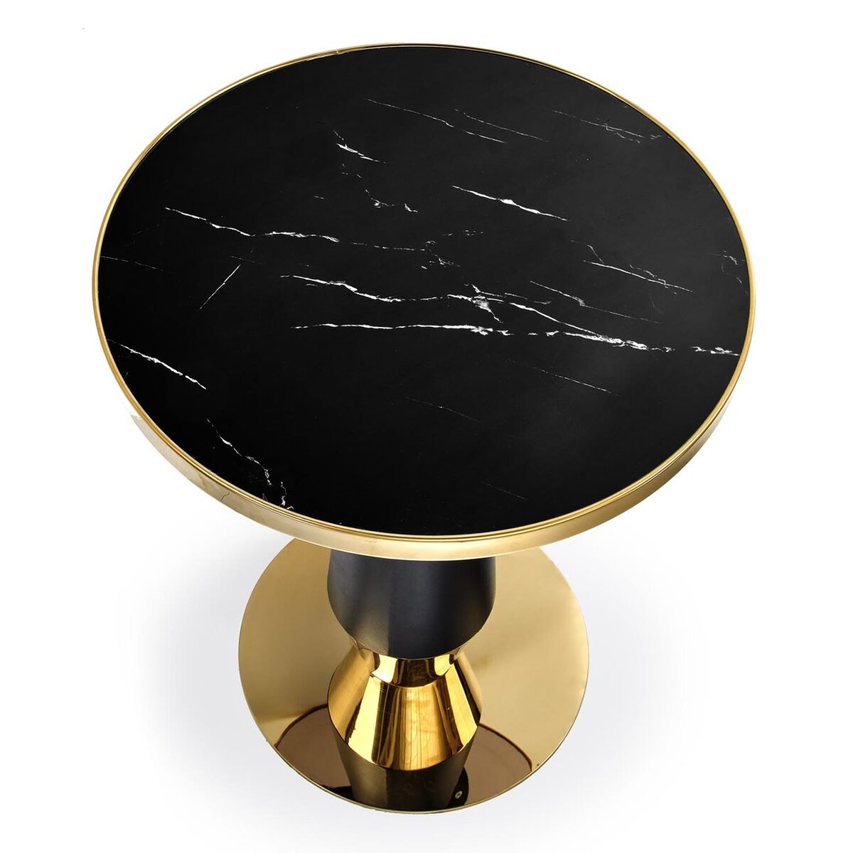 Супер компактна кръгла маса за двама с дървен плот в черен мрамор, Моли.