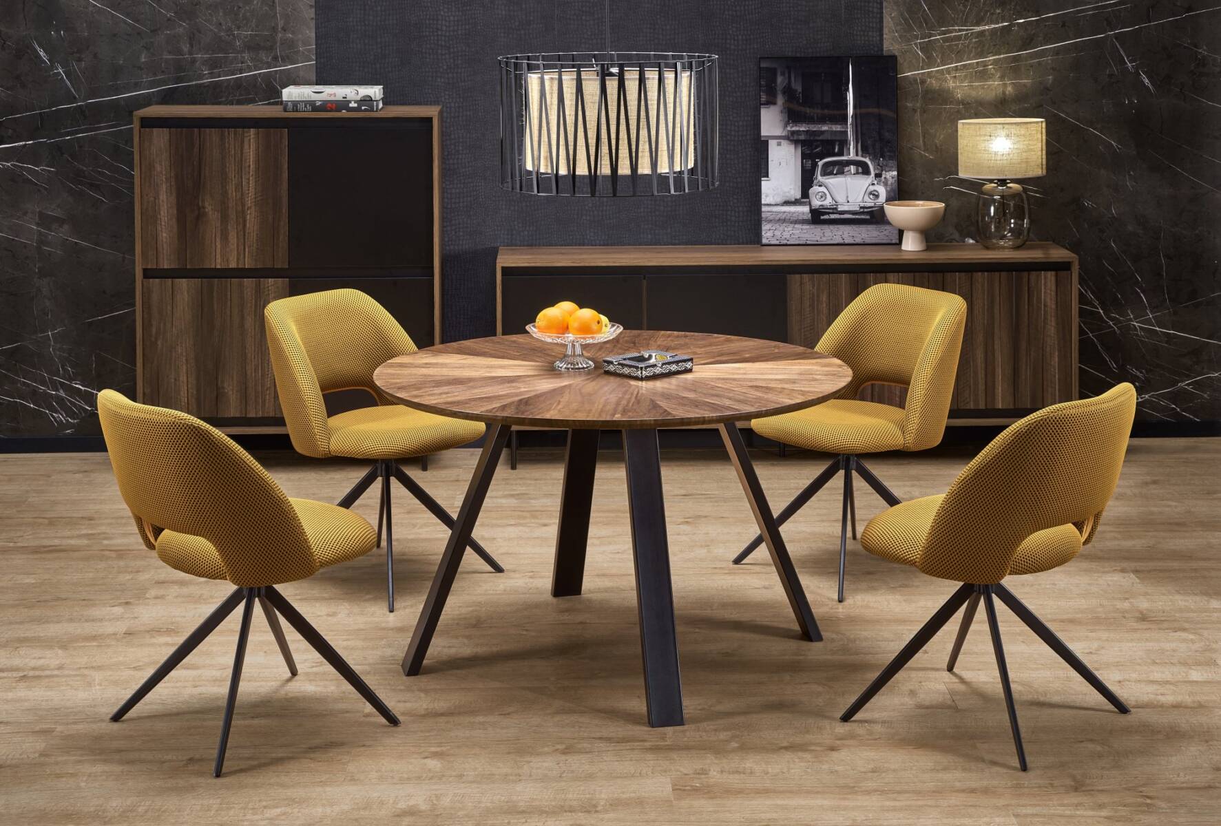 Кръгла трапезна маса с плот от МДФ с естествен фурнир и крака от метал, Дънди.