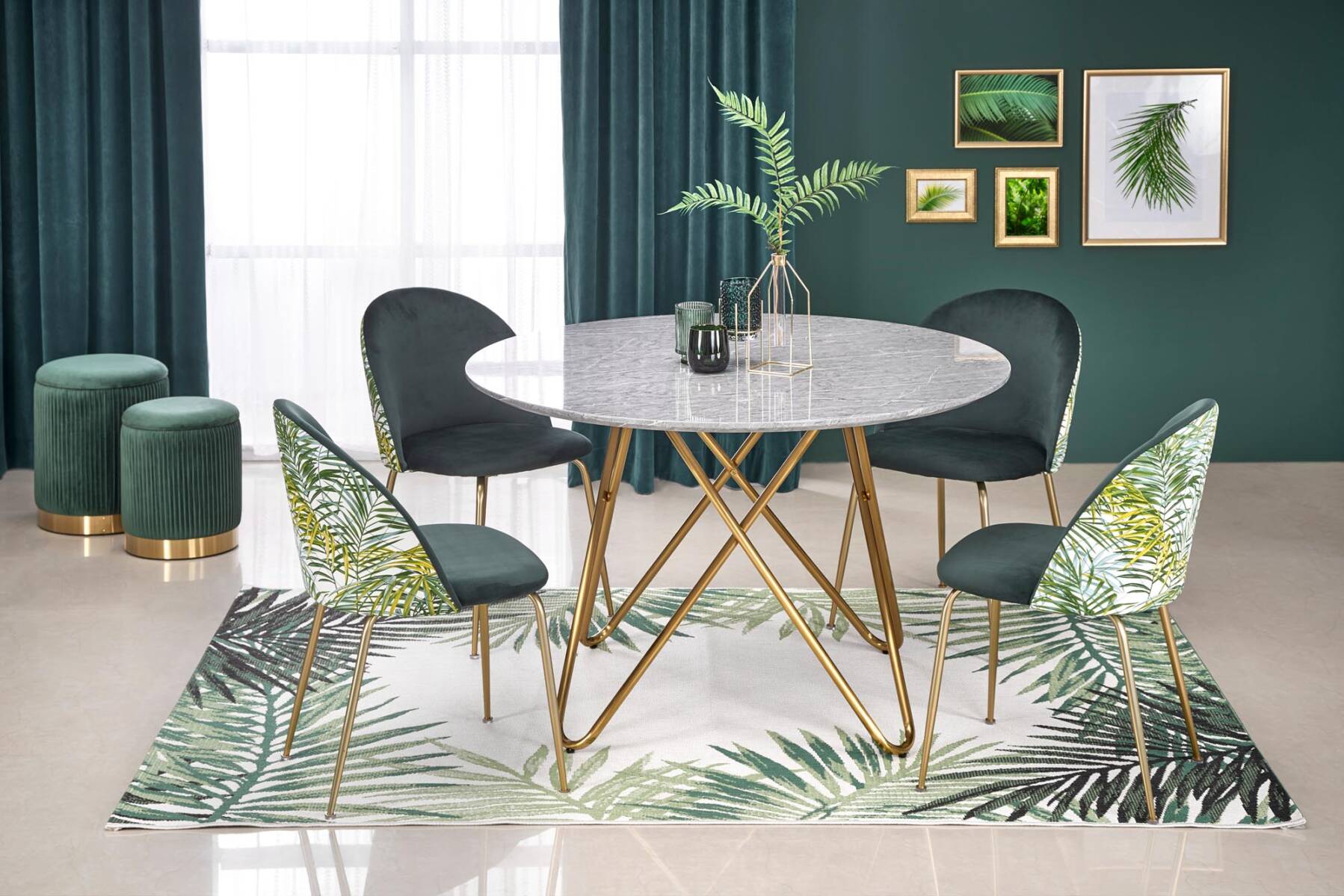 Кръгла трапезна маса с плот в цвят сив мрамор и нестандартни златисти крака Бонита.