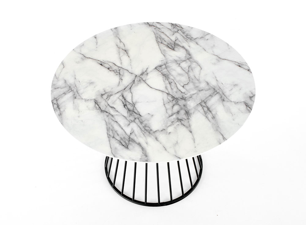 Кръгла трапезна маса в цвят бял мрамор и черно