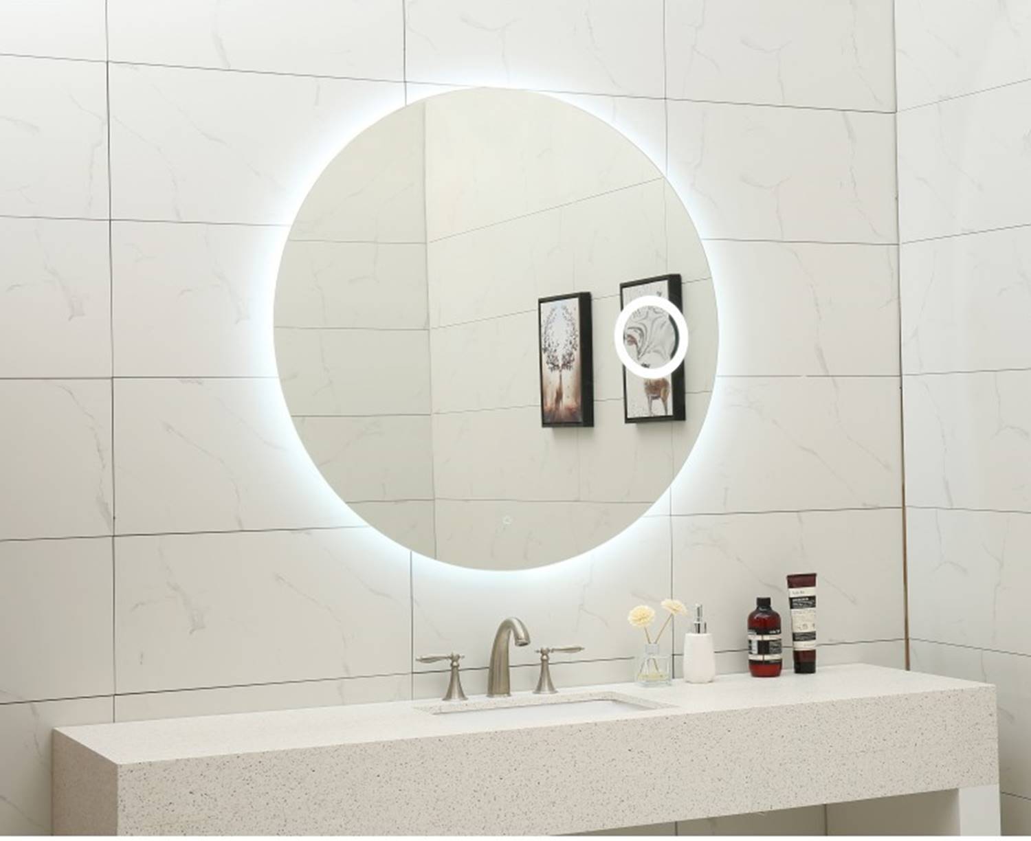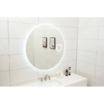 Функционално кръгло LED огледало за баня с възможност за контрол на светлината в три цвята и touch screen активация.