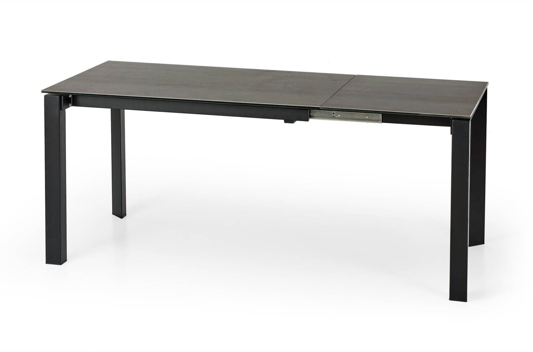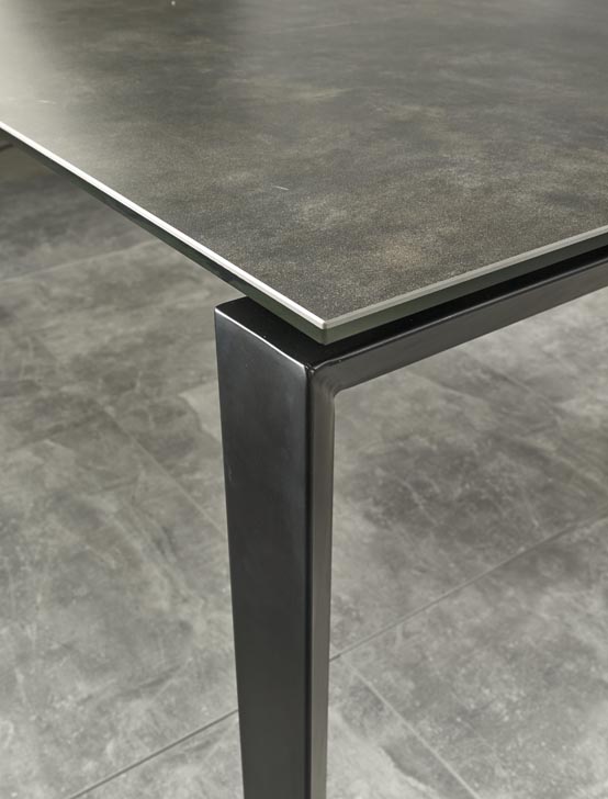 Красива разтегателна маса от стомана с керамичен плот Никол. Има тъмен металиков цвят и семпла конструкция.