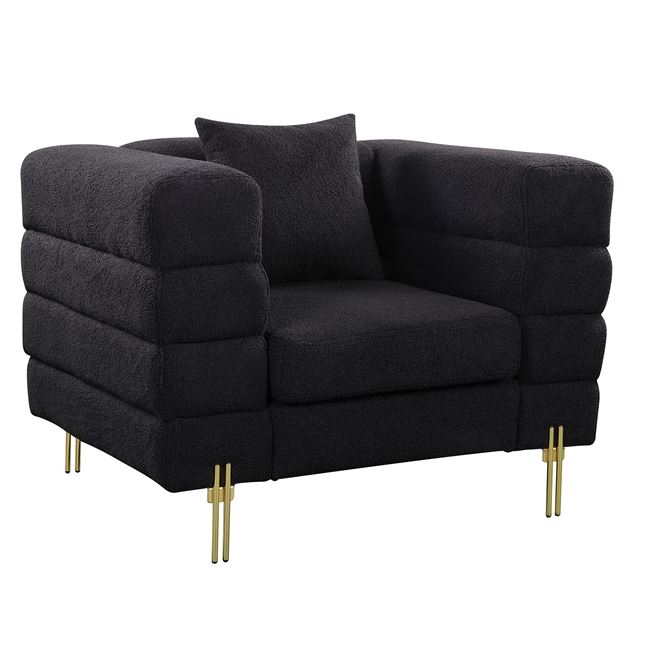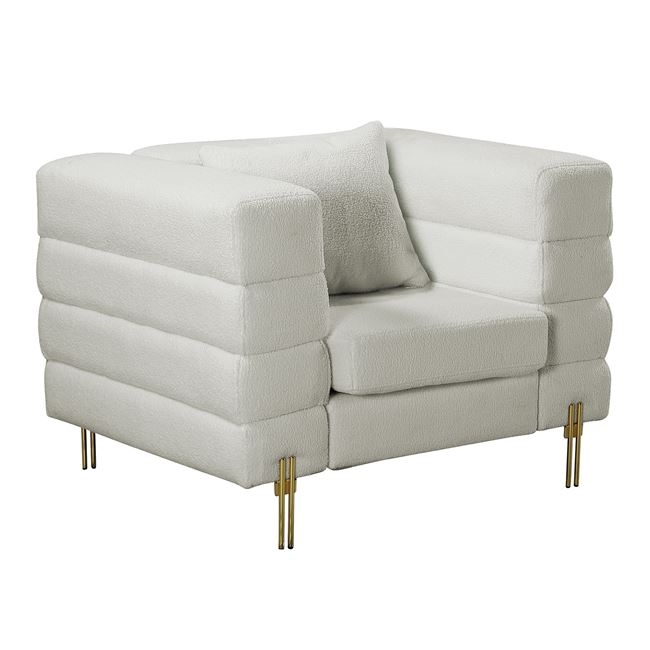 Красиво кресло, изработено с текстилна дамаска от букле и метални крачета в златист цвят.