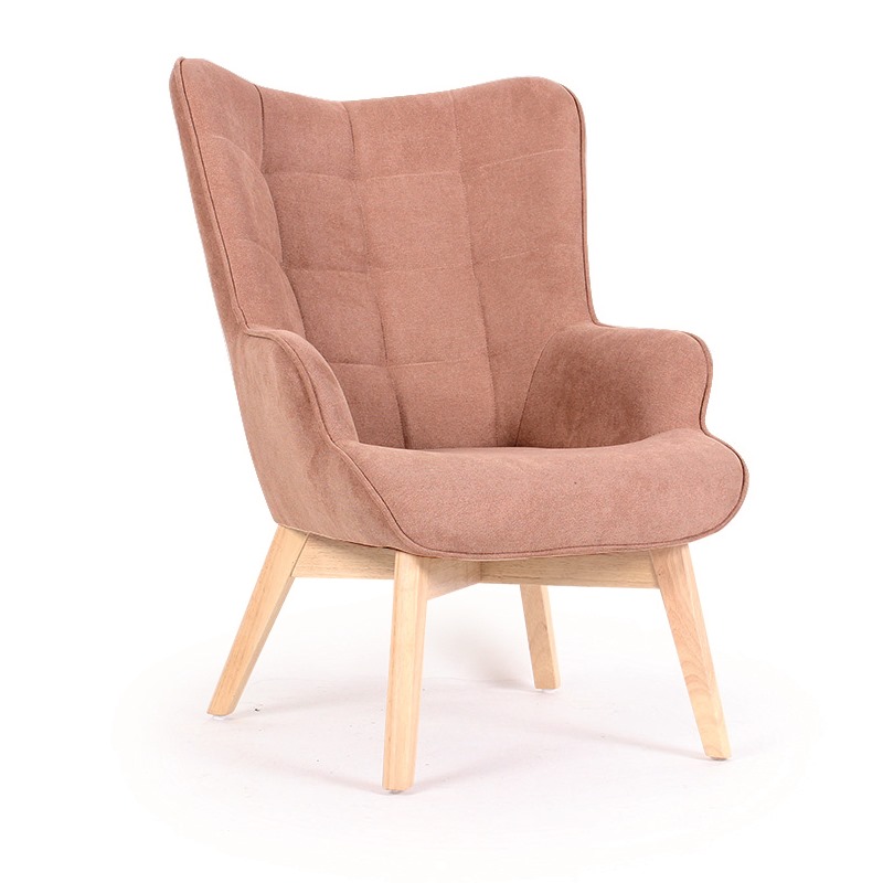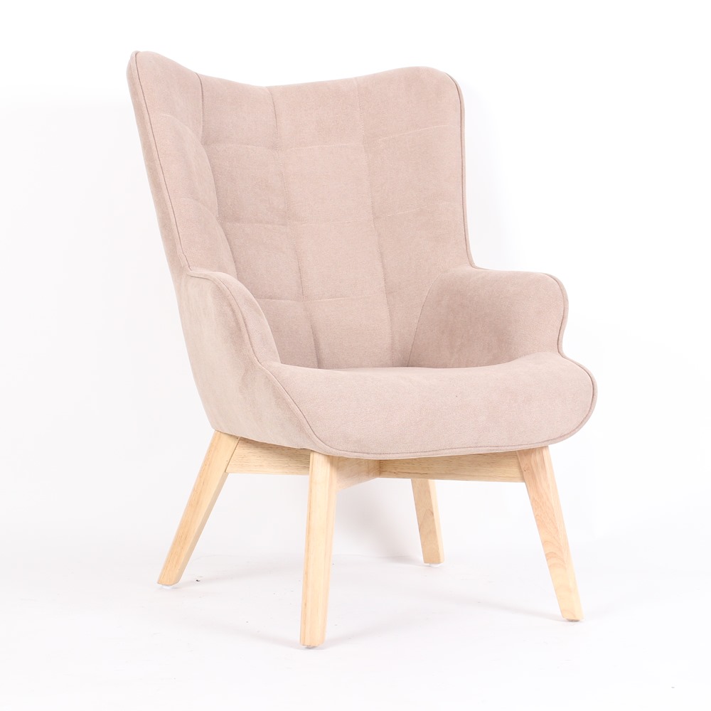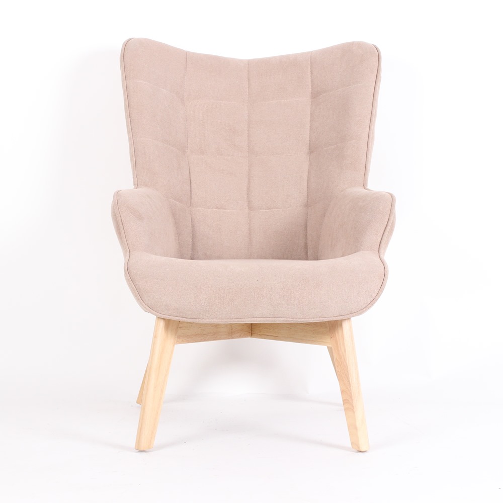 Кресло с текстилна дамаска и дървени крака Доан (3 цвята) - светлокафяв