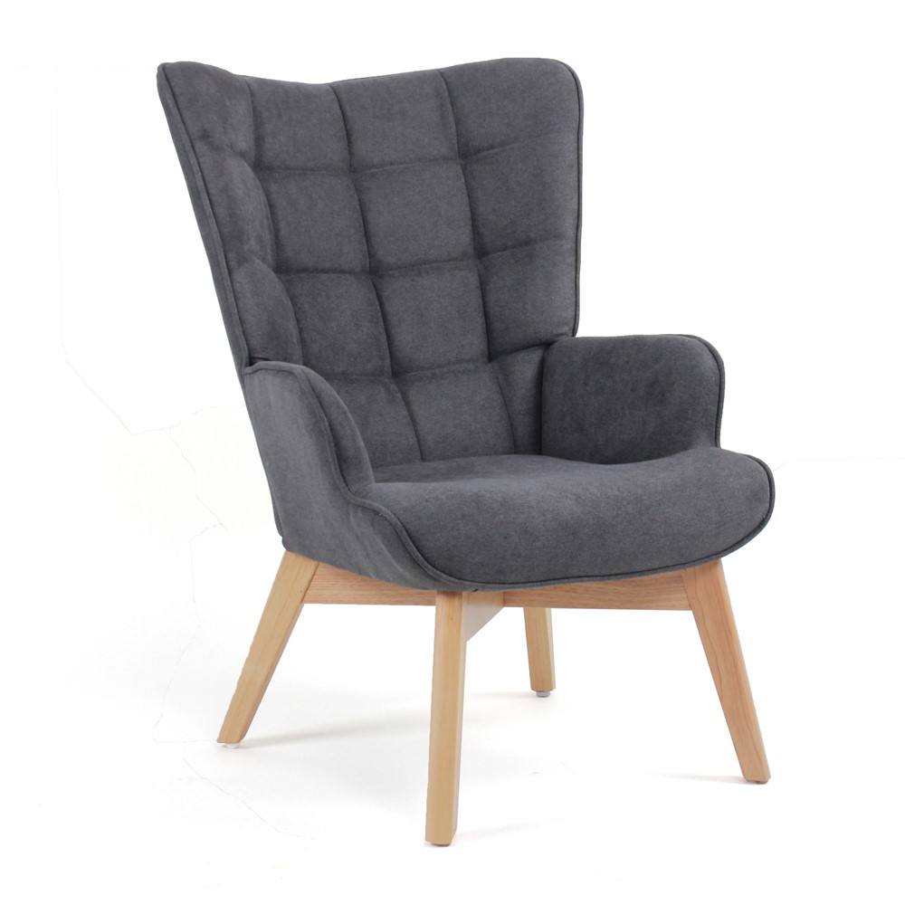 Кресло с текстилна дамаска и дървени крака Доан (3 цвята) - сив