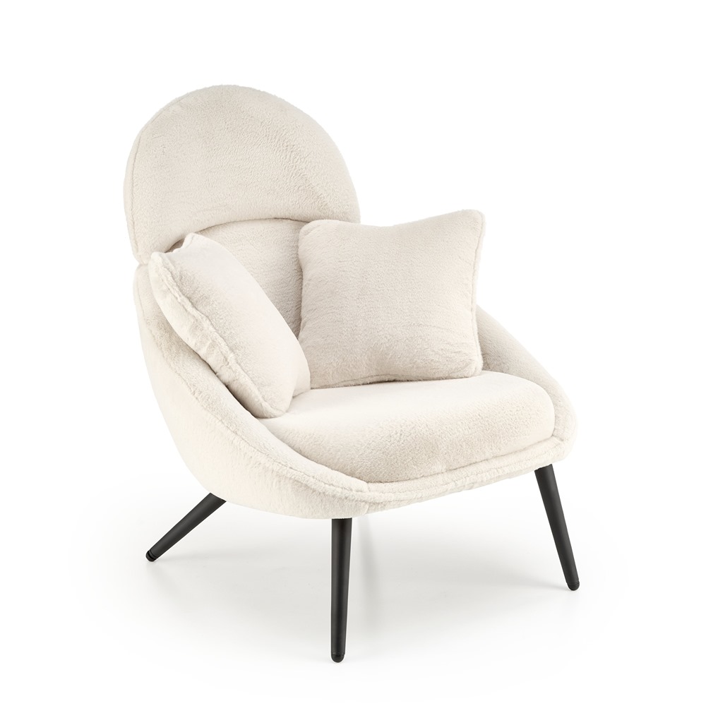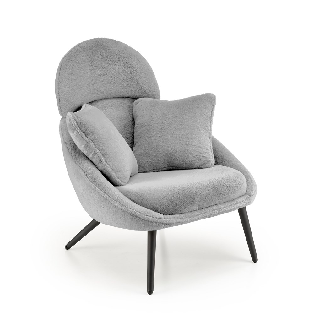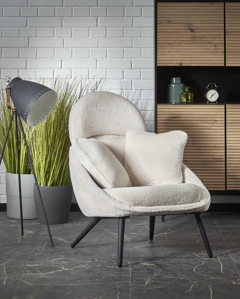 Красиво кресло с мека текстилна дамаска и възглавници в два цвята – крем или сиво.