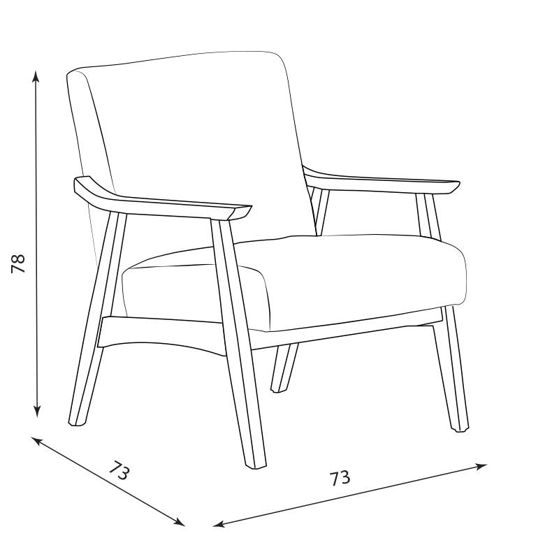 • Размери: дължина: 73 см, ширина: 73 см, височина: 78, височина на облегалката: 43 см, височина седалка от земята: 35 см