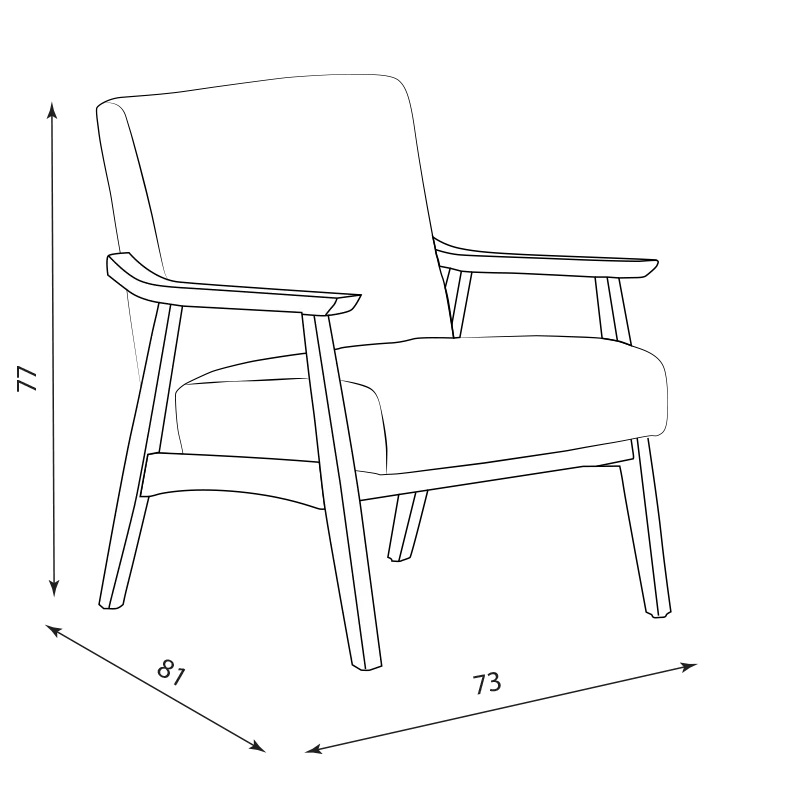 - Размери: дължина: 81 см, ширина: 73 см, височина: 77, височина на облегалката: 37 см, височина седалка от земята: 40 см