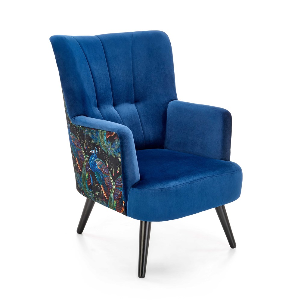 Кресло с кадифена дамска и многоцветен гръб (3 цвята) - син
