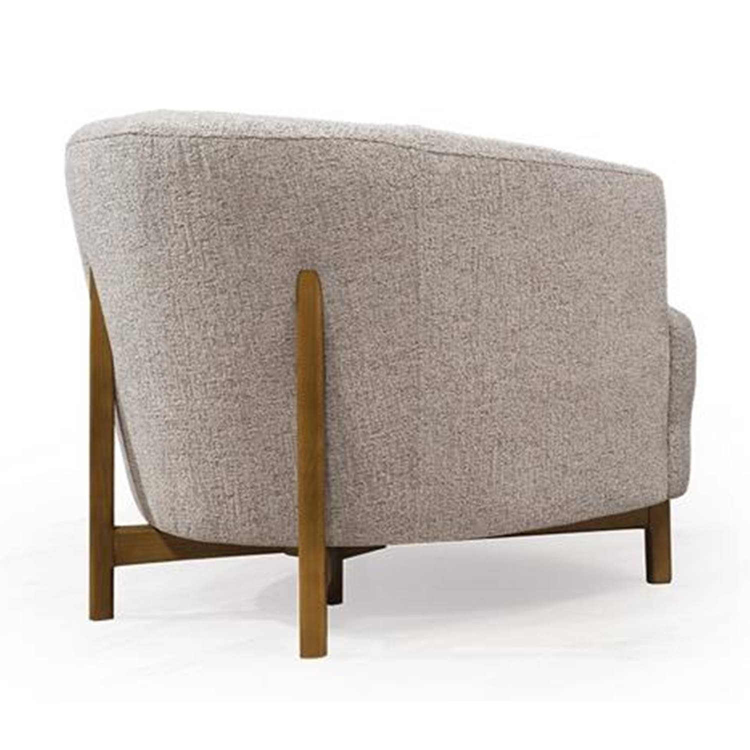 Елегантно кресло с овална облегалка и дървени крачета в изискан цвят орех, което съчетава стил и комфорт по перфектен начин.